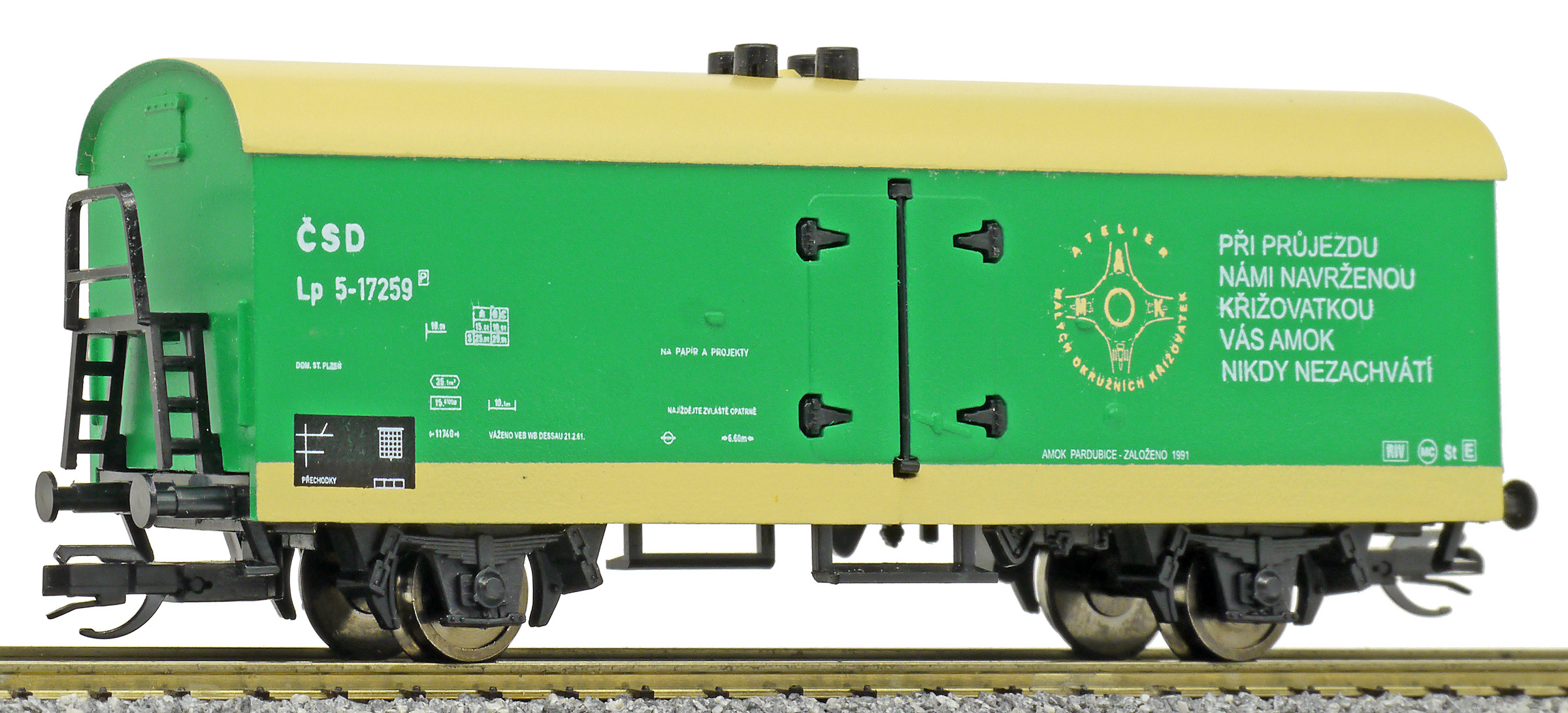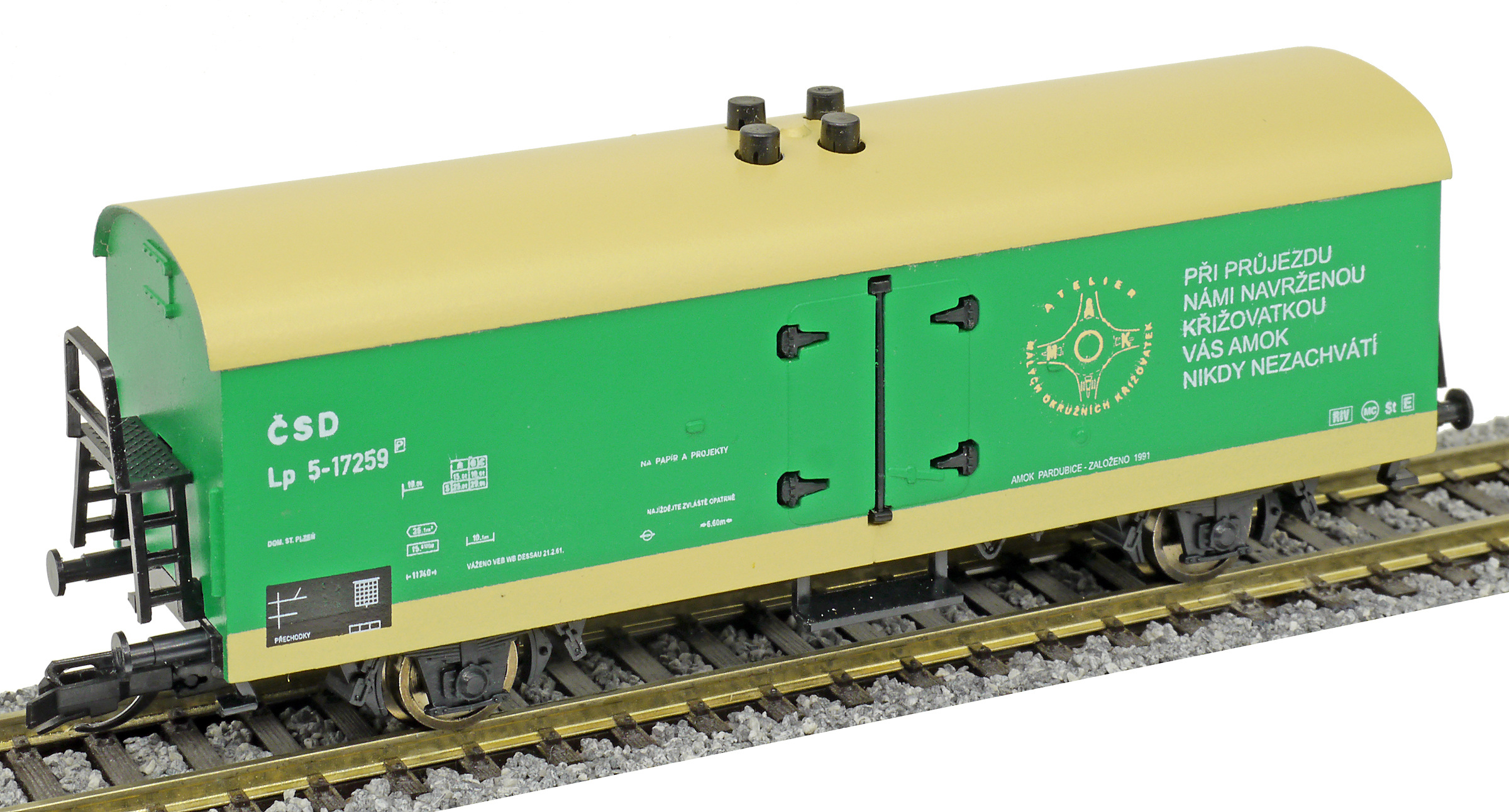 | nákladní chladící vůz zelený s krémovou střechou „AMOK“ |