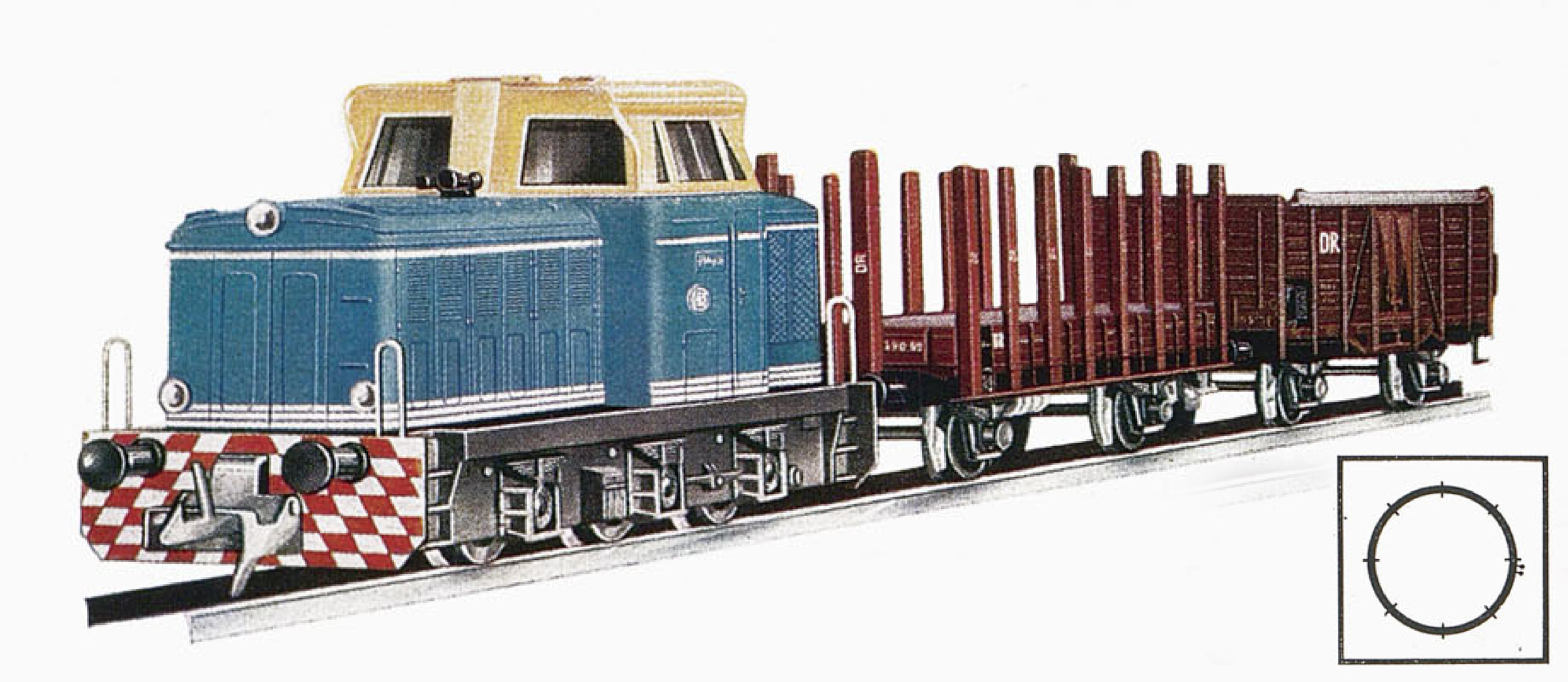 set dieselové lokomotivy T334 a dvou nákladních vozů