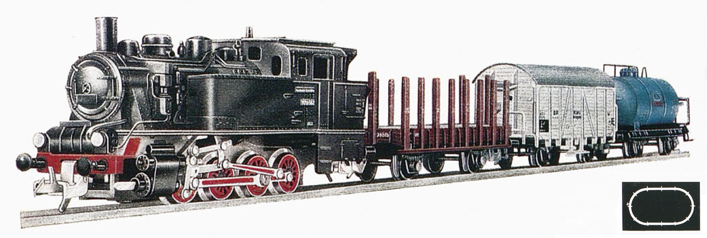 set parní lokomotivy BR 92 a tří nákladních vozů