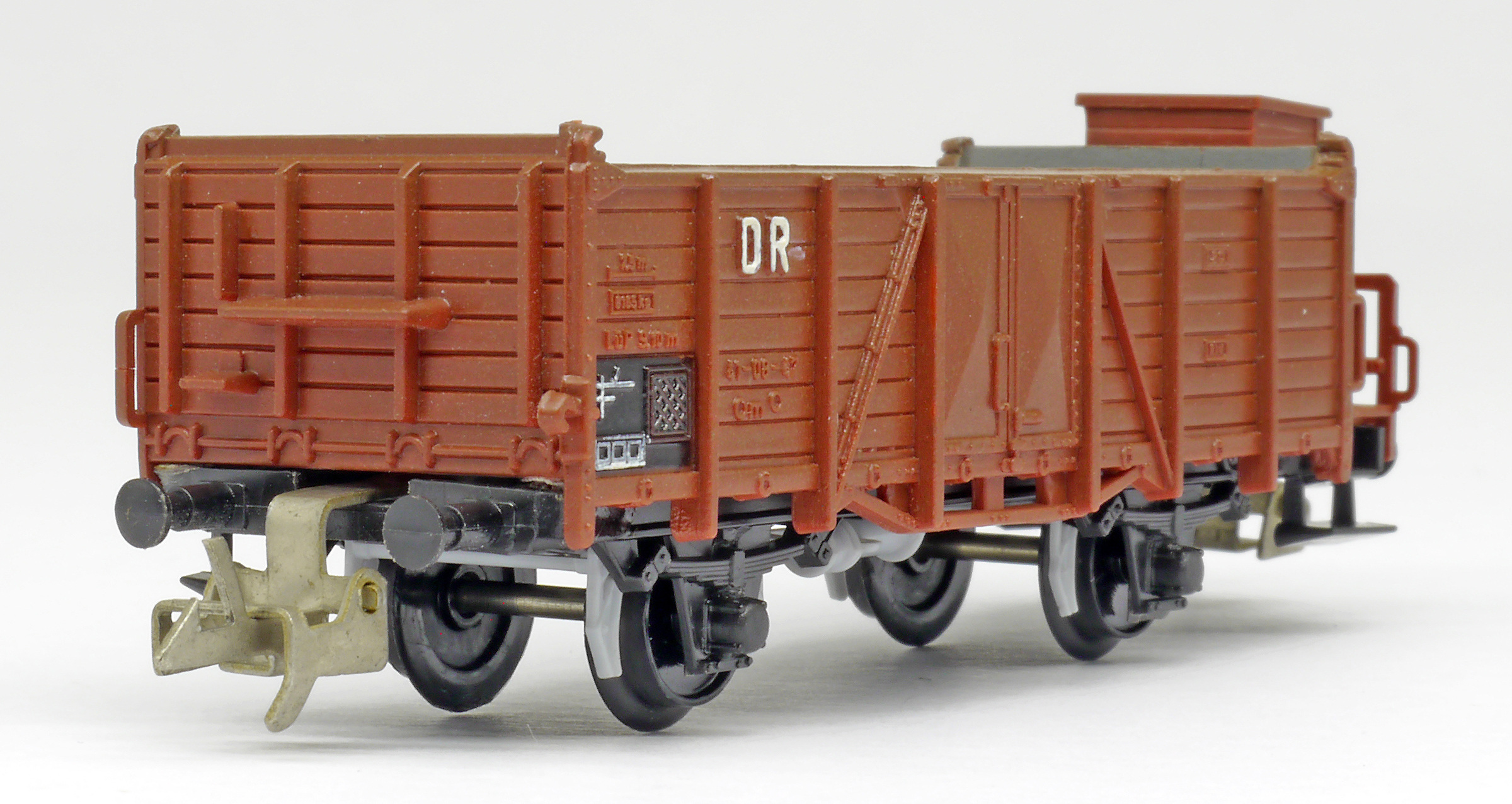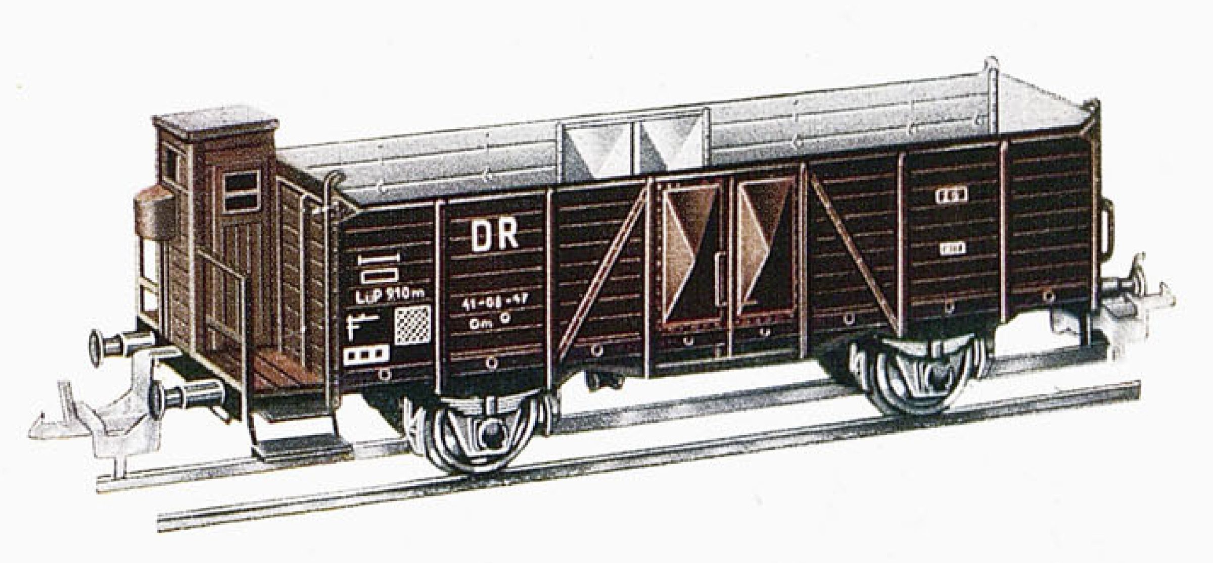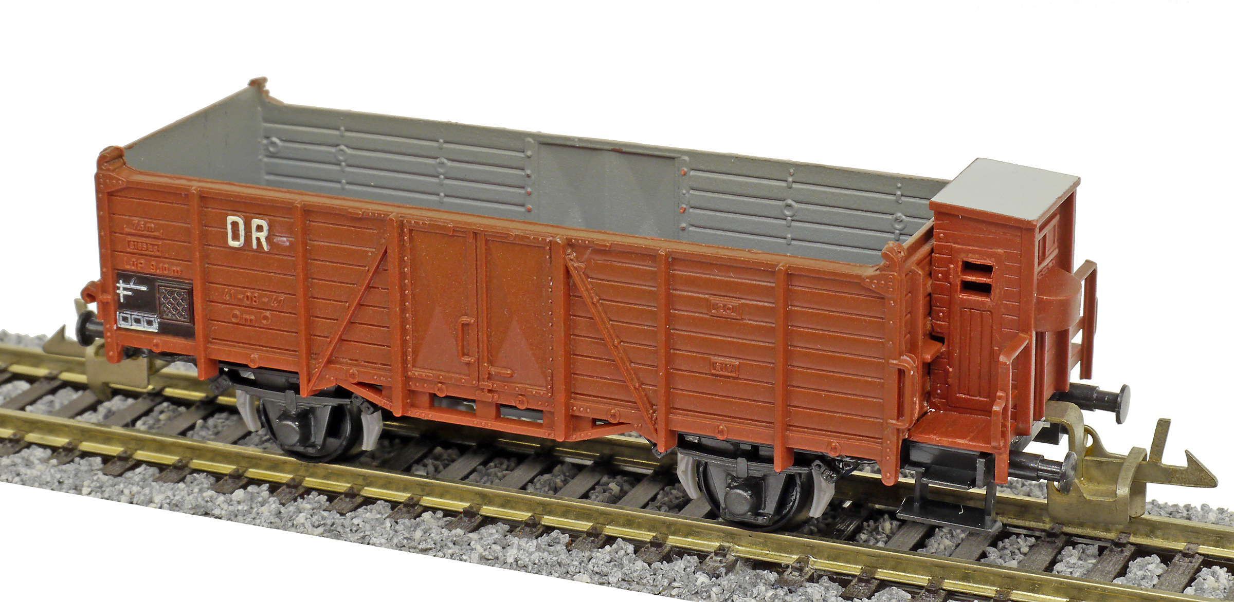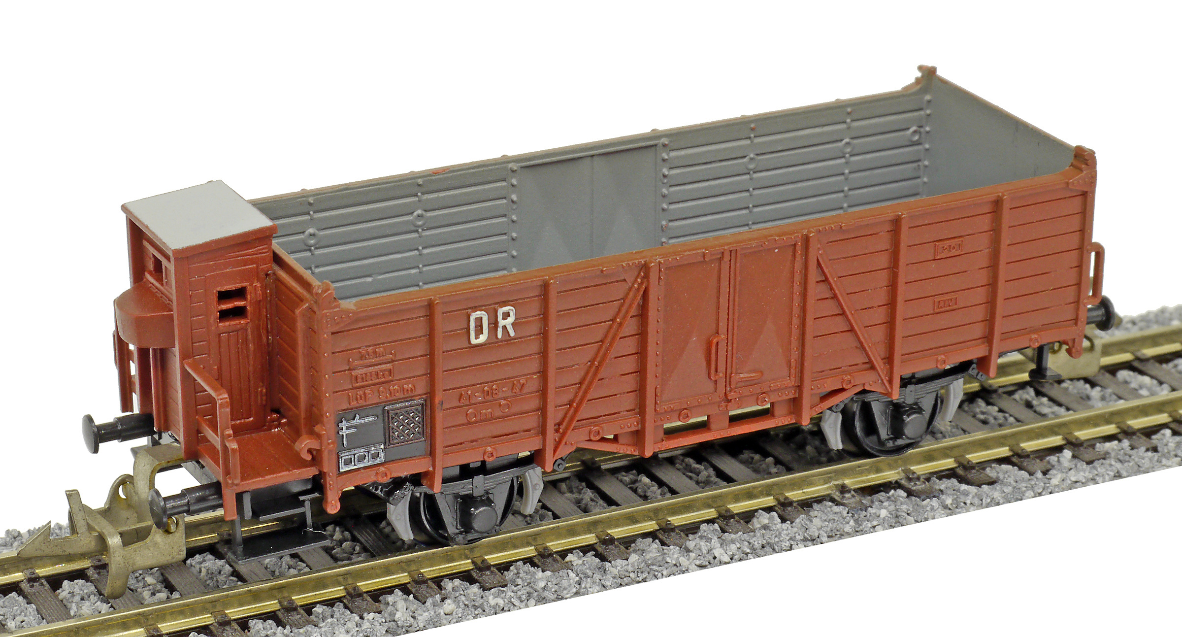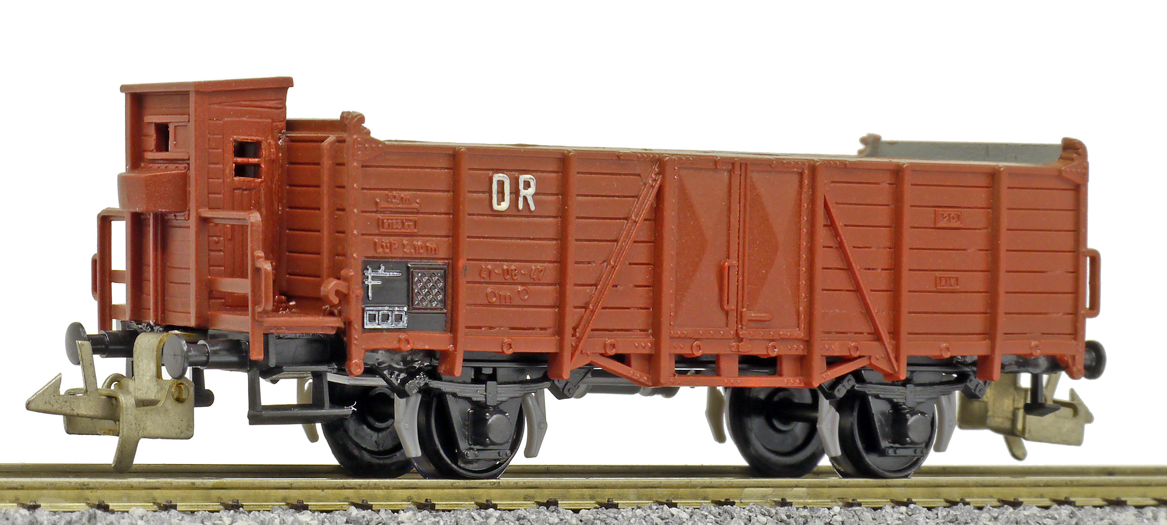 otevřený nákladní vůz červenohnědý s brzdařskou budkou