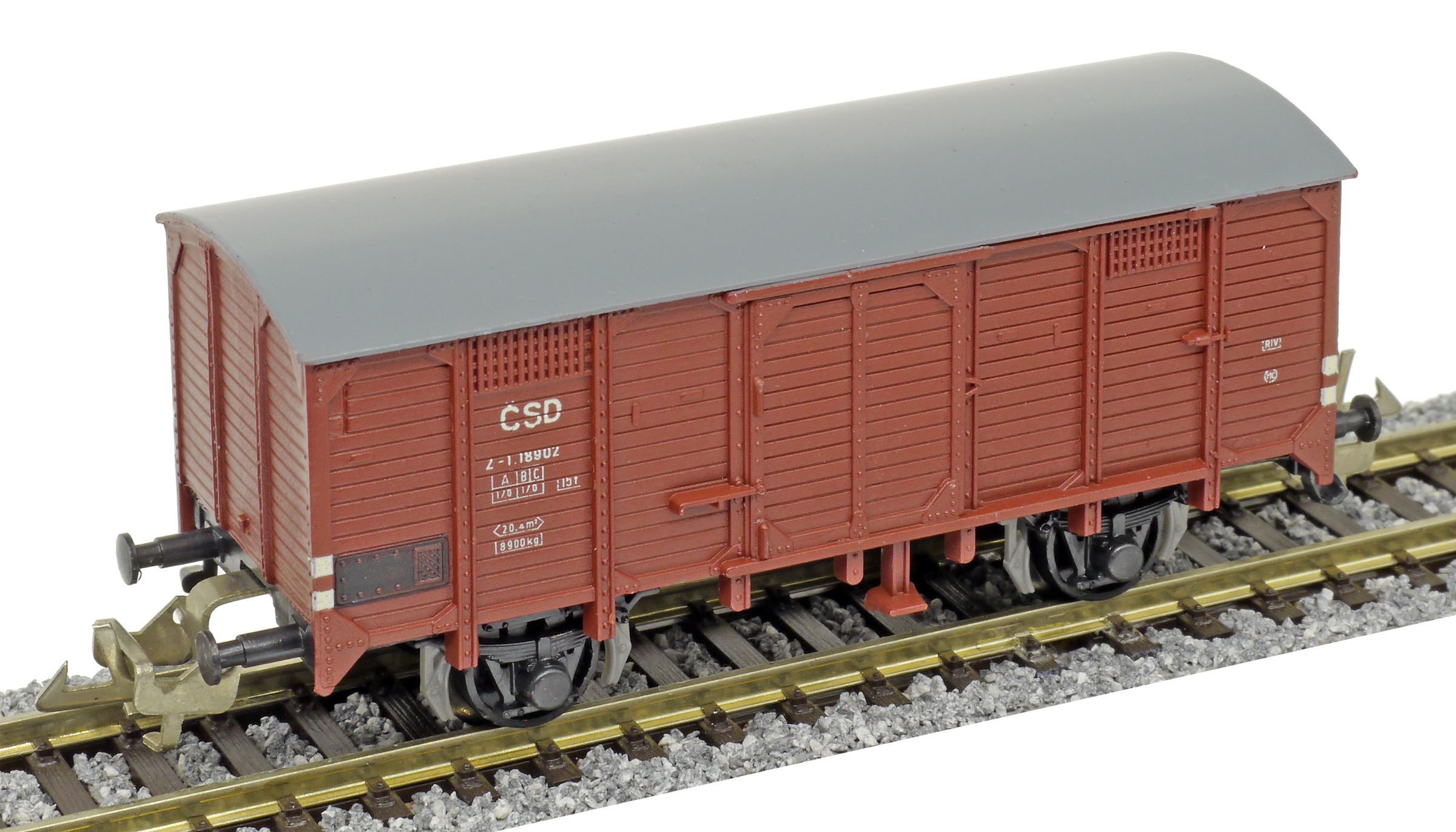 krytý nákladní vůz červenohnědý s šedou střechou