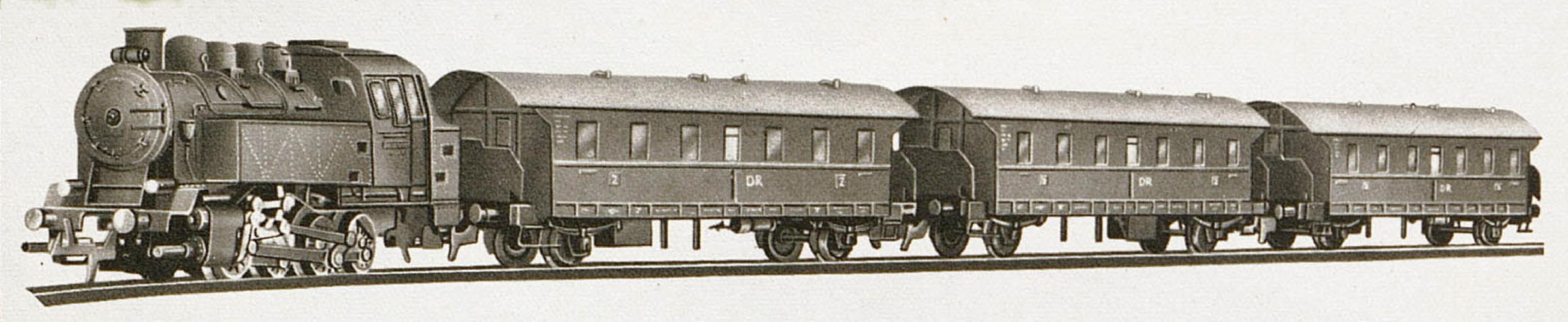 | set parní lokomotivy BR 81 a tří osobních vozů |