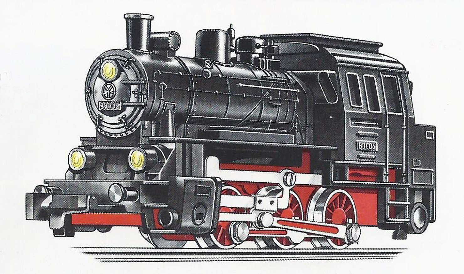 | parní lokomotiva černá s červeným pojezdem |