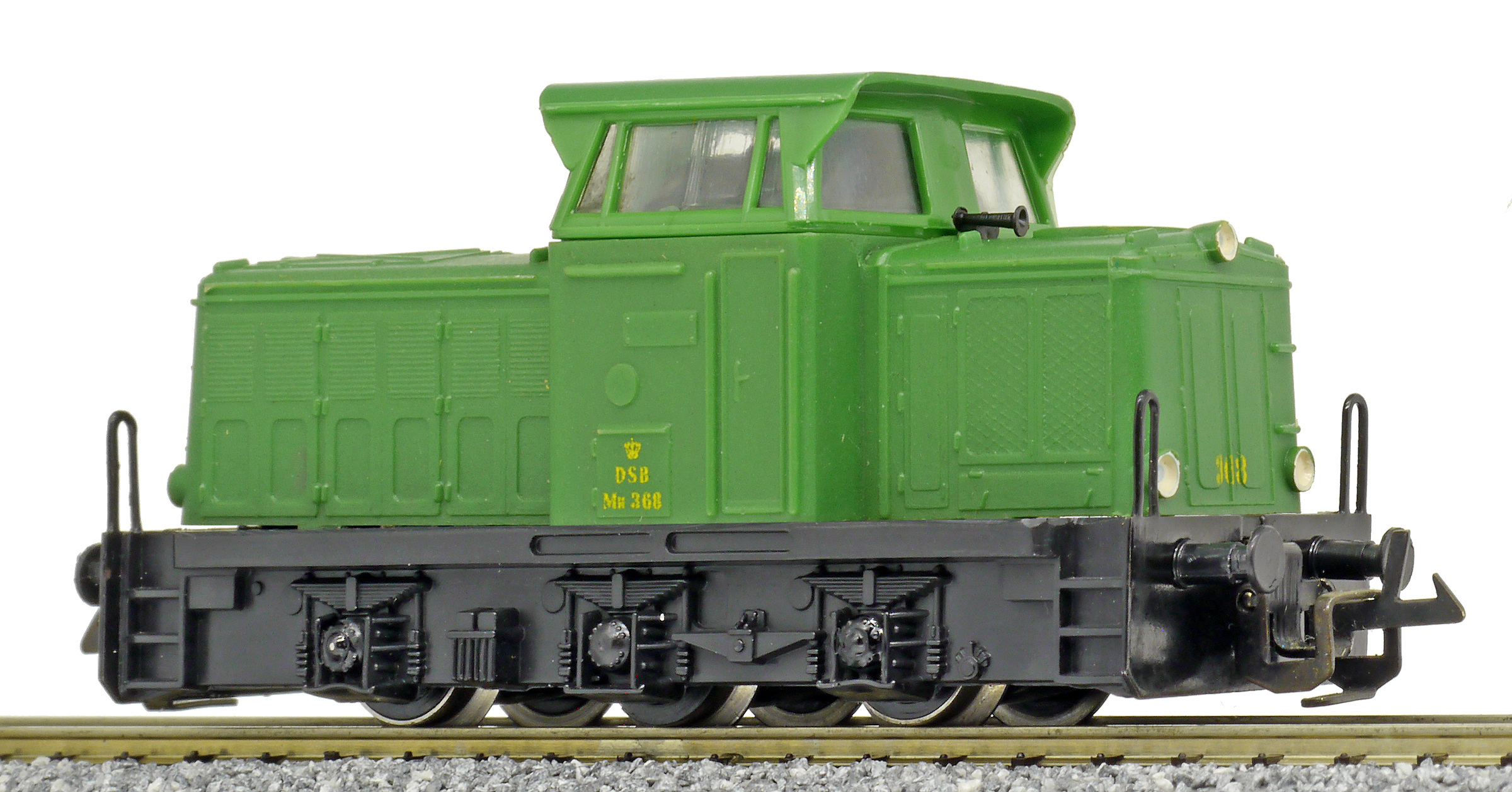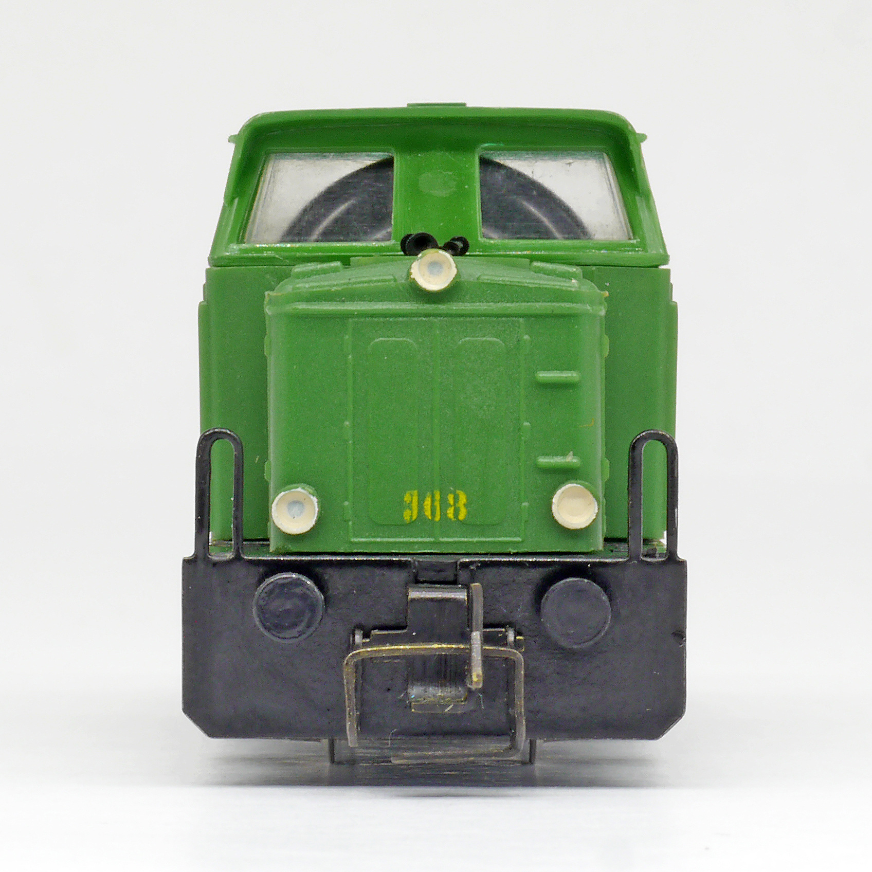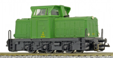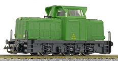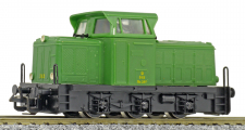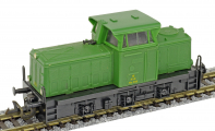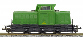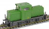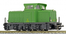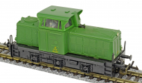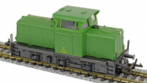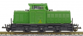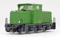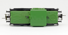 | dieselová lokomotiva zelená s černým rámem a pojezdem |