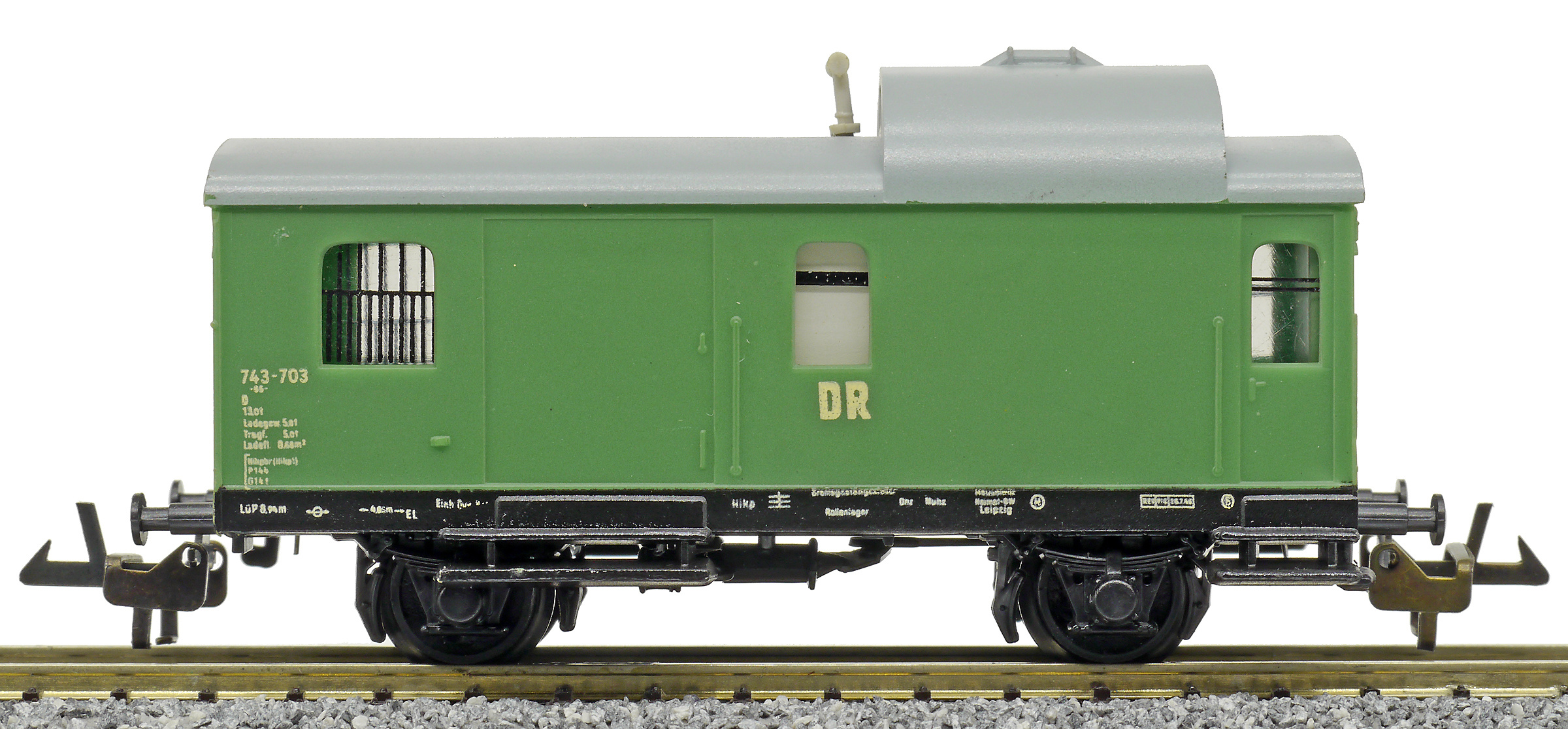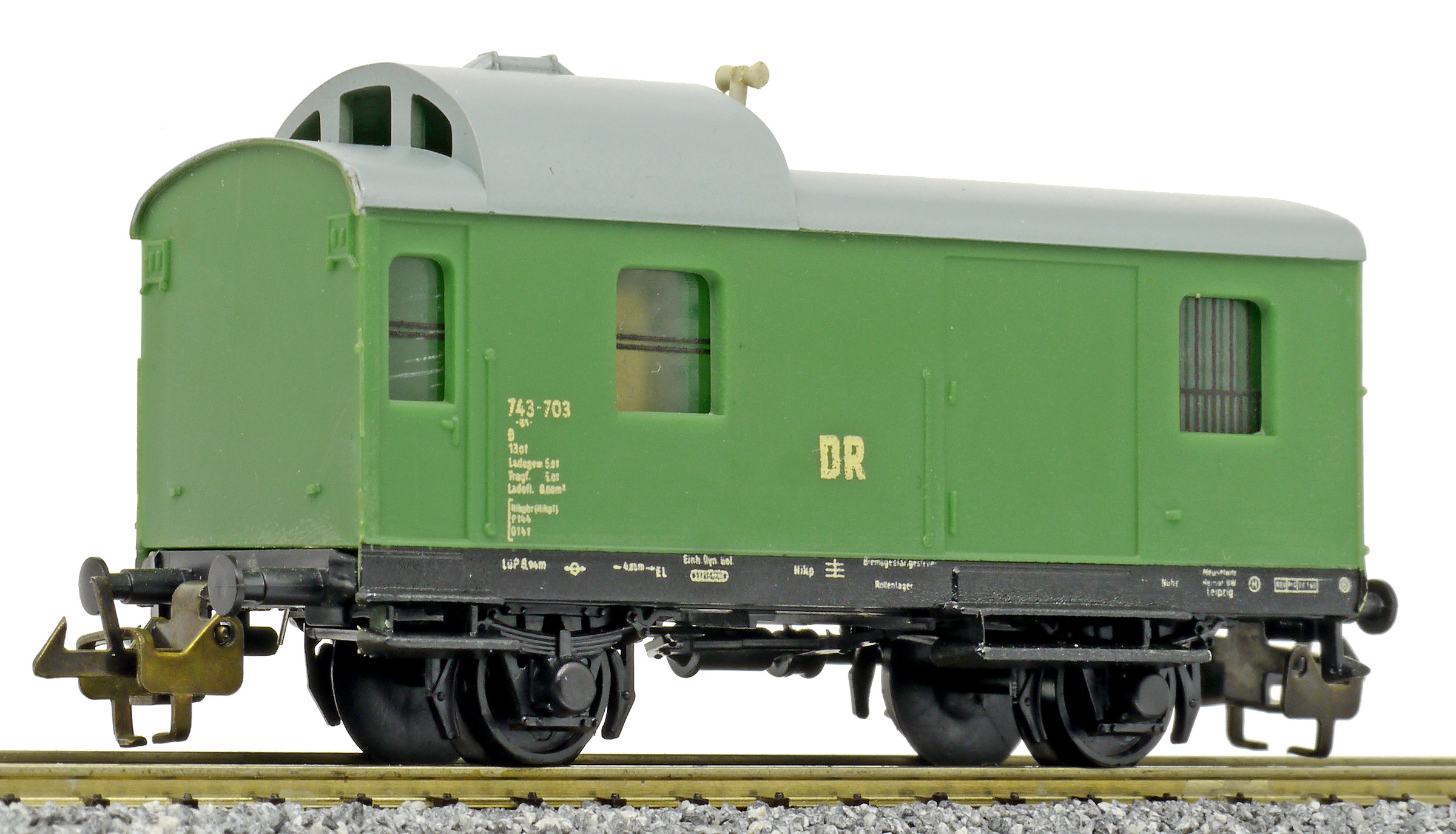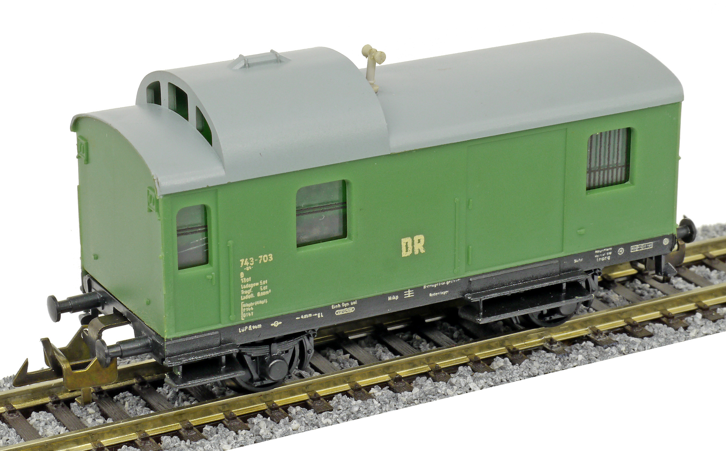 | služební vůz pro nákladní vlaky zelený s šedou střechou |