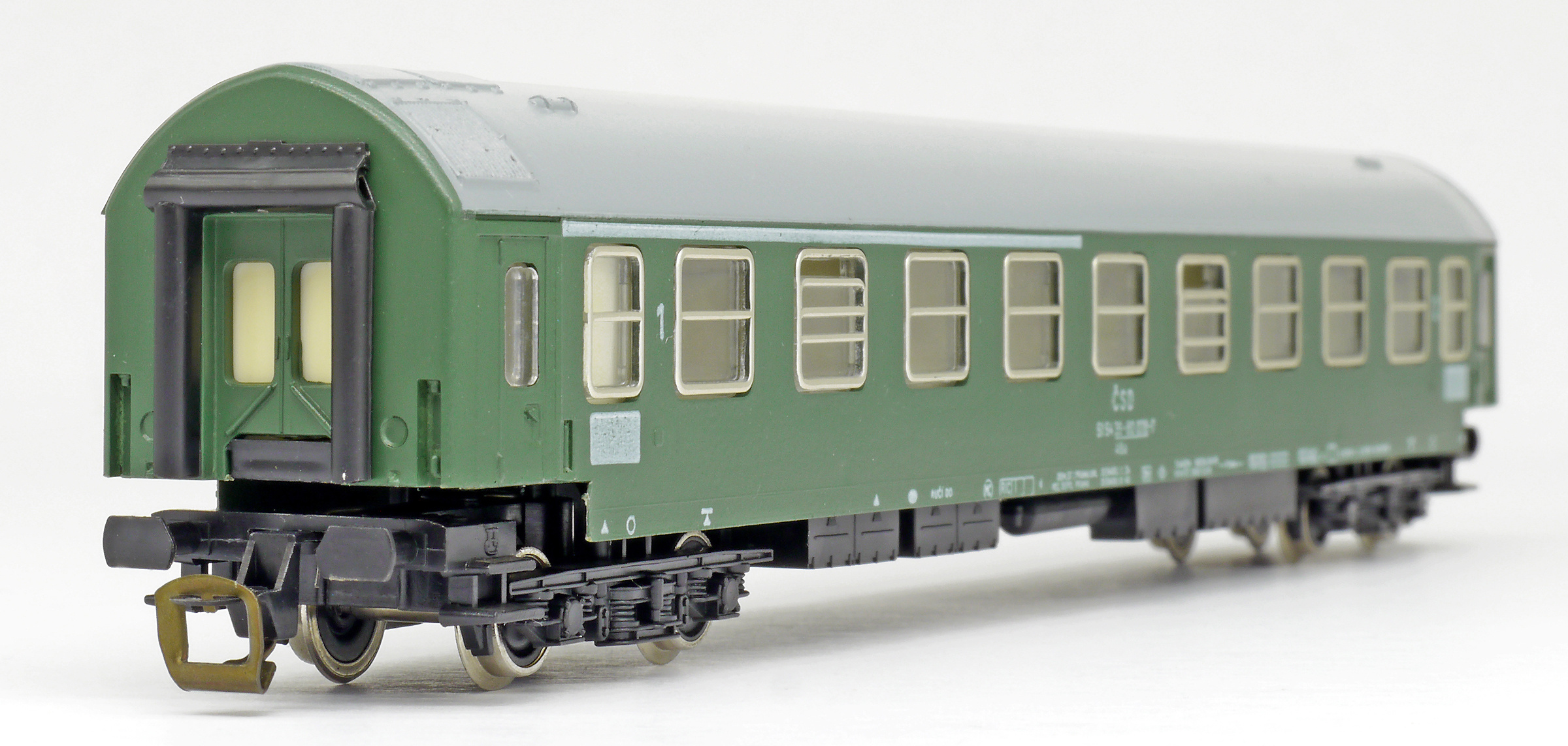 | rychlíkový vůz zelený s šedou střechou 1./2. tř. |