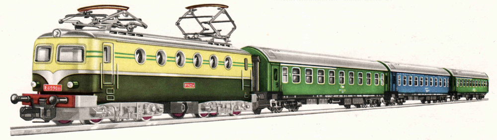 | set elektrické lokomotivy E 499 a tří rychlíkových vozů |