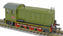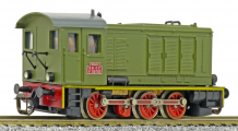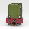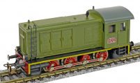 | dieselová lokomotiva zelená se žlutým rámem a černým pojezdem |