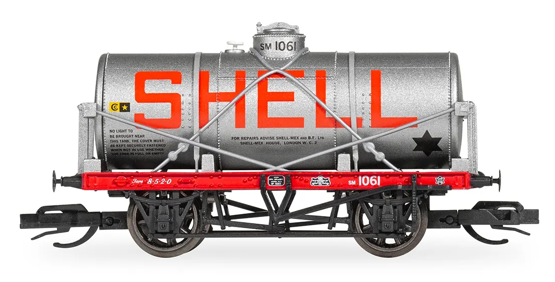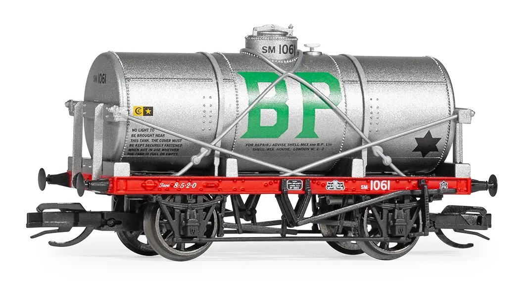 | kotlový vůz stříbrný s logy „BP“ a „SHELL“ |