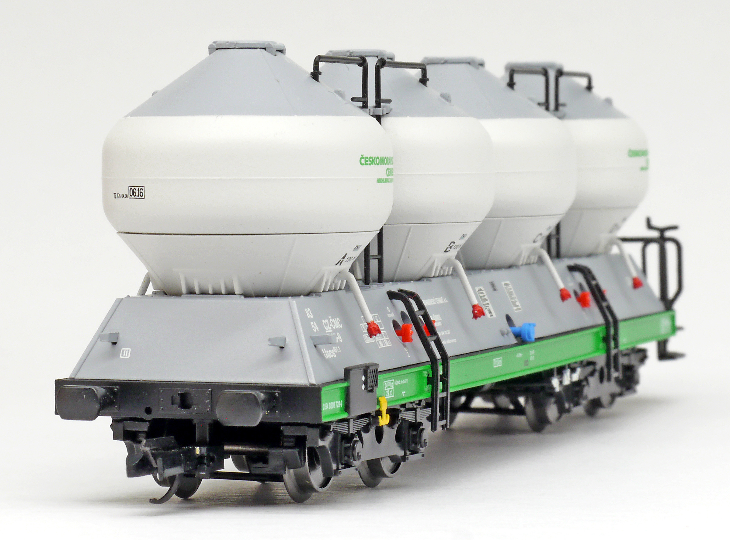 | nákladní samovýsypný vůz šedý se zeleným rámem s šedými nádobami |