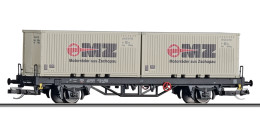 | nákladní plošinový vůz ložený dvěma kontejnery 20' „DEUTRANS“ |