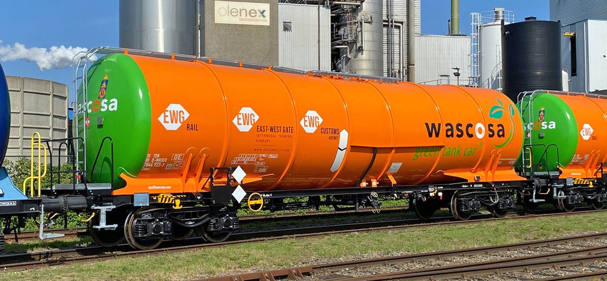 | kotlový vůz oranžový-zelený s logem „wascosa - green tank car“ |