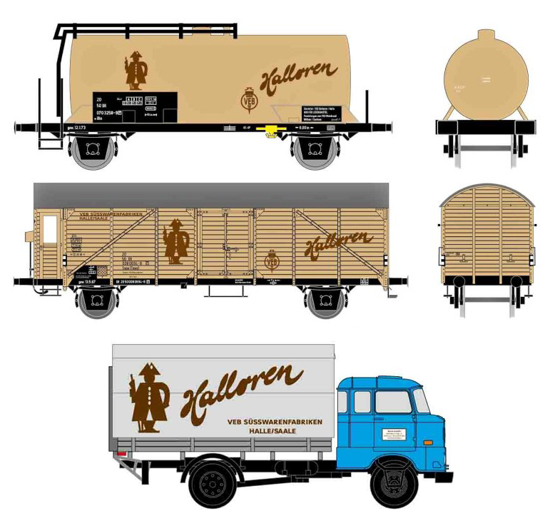 | set dvou nákladních vozů „Halloren“ a jednoho vozu FA W50L |