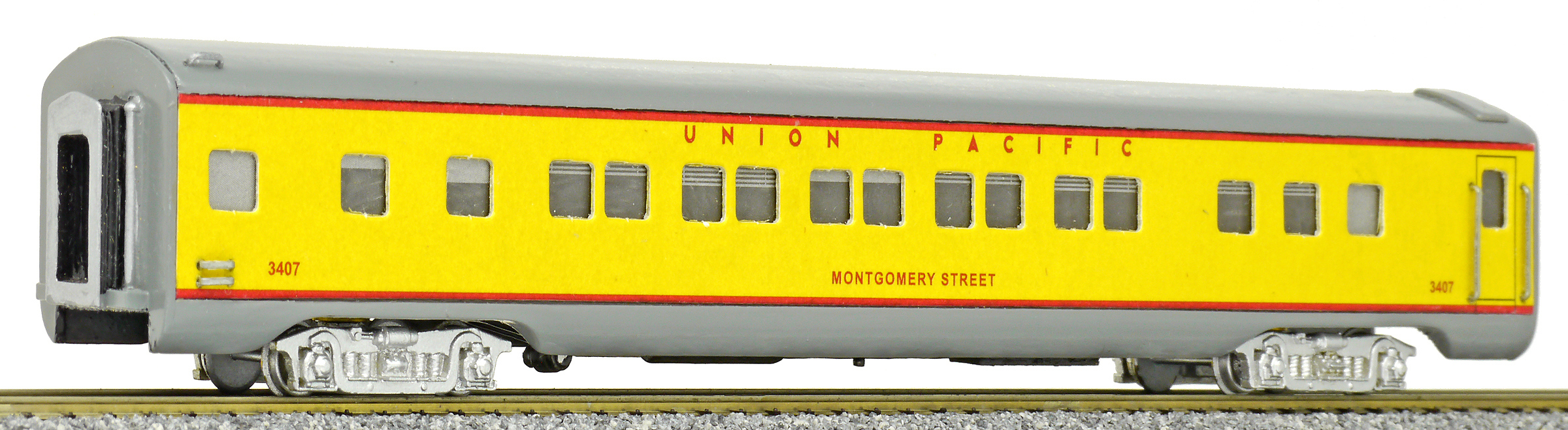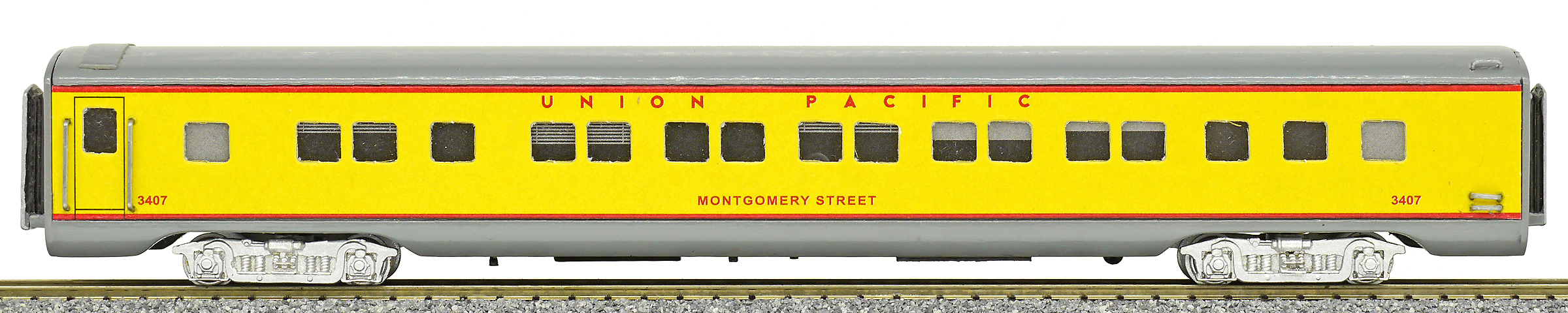 | americký rychlíkový vůz pro dálkovou přepravu žlutý s šedou střechou |