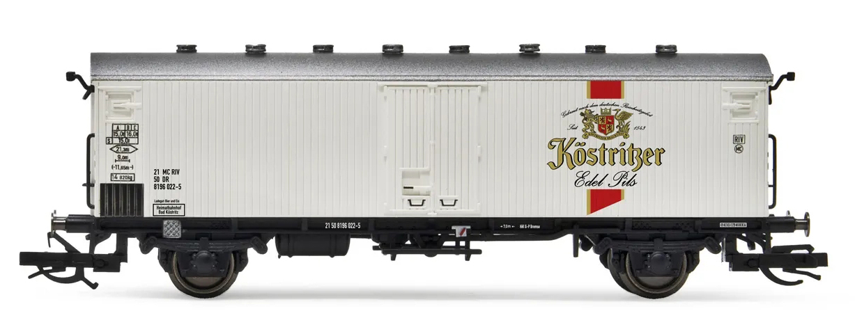 | chladící krytý nákladní vůz bílý se stříbřitou střechou „Köstritzer Bier“ |