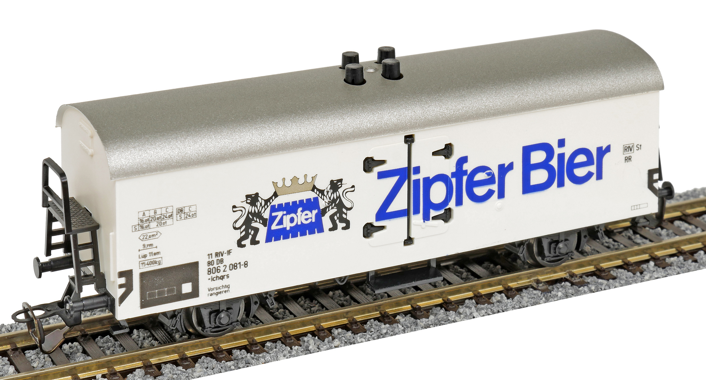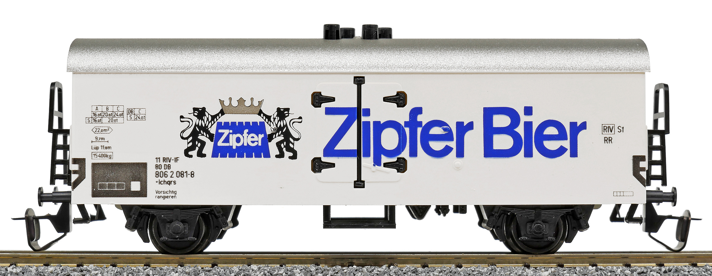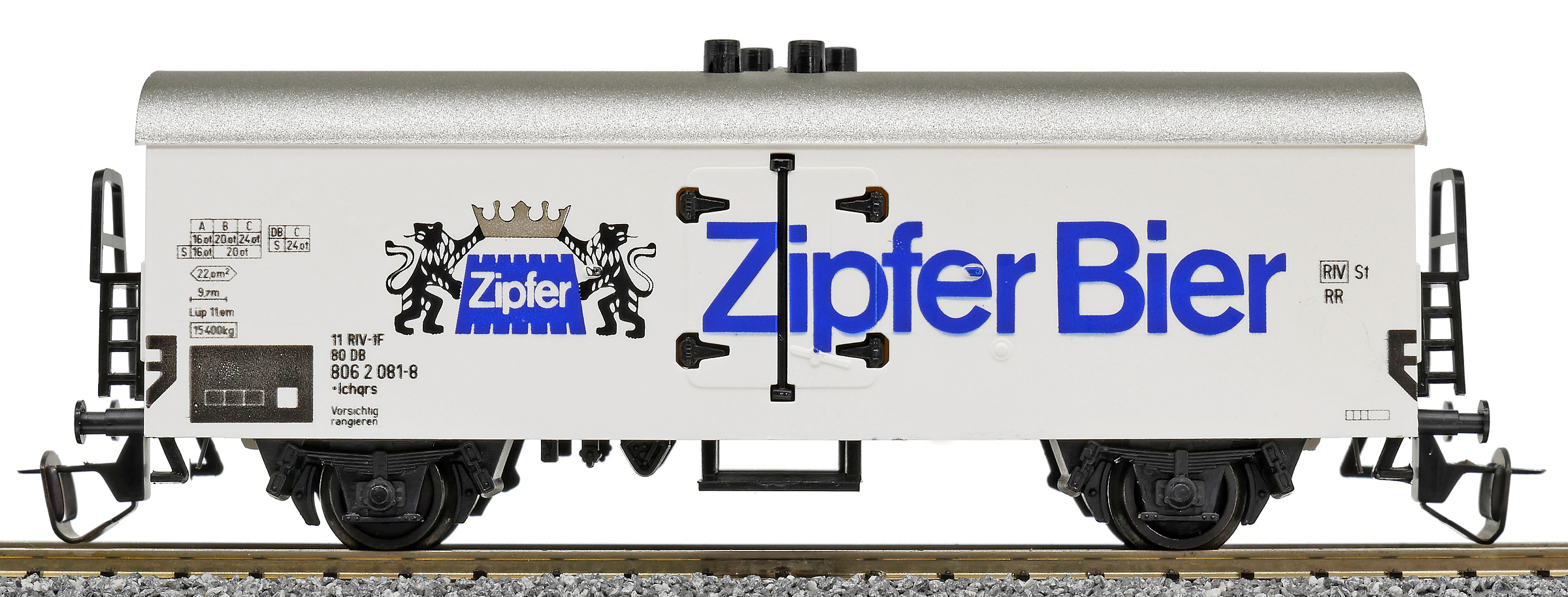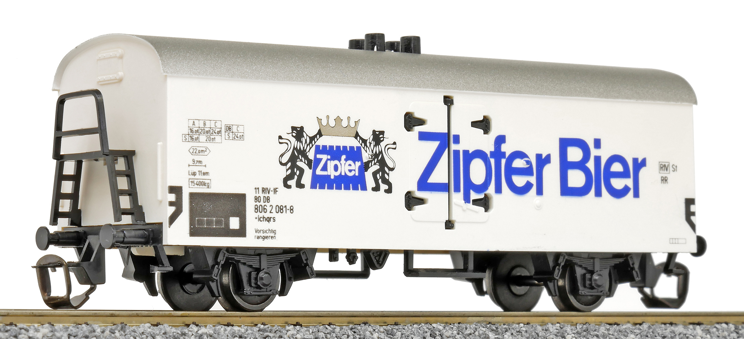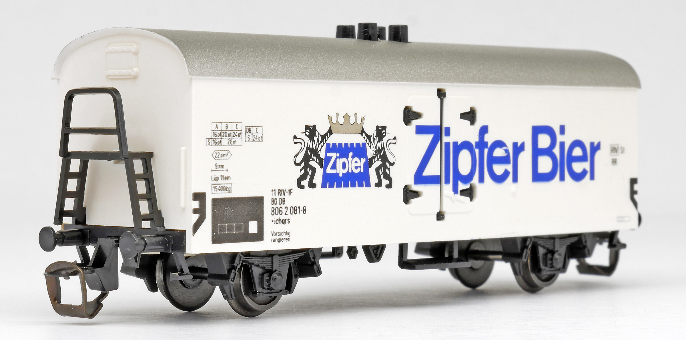 | nákladní chladící vůz bílý s šedou střechou „Zipfer Bier“ |