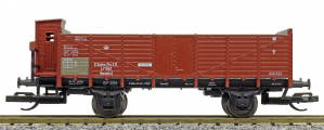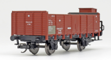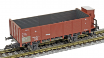 | otevřený nákladní vůz červenohnědý s brzdařskou budkou |