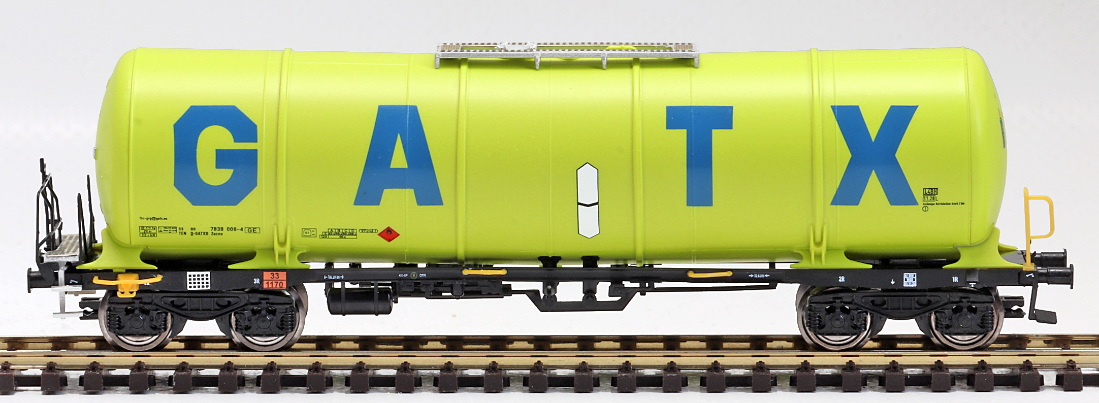 | kotlový vůz zelený s logem „GATX“ |