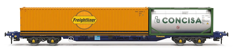 | kontejnerový vůz „KFA“ tmavě modrý šedý ložený 40' a 20' kontejnerem |