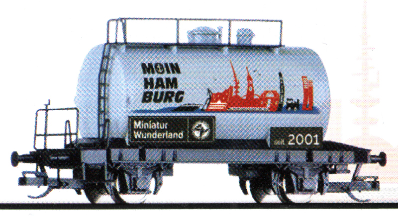 | kotlový vůz světle šedý s reklamním potiskem „Miniatur Wunderland” |