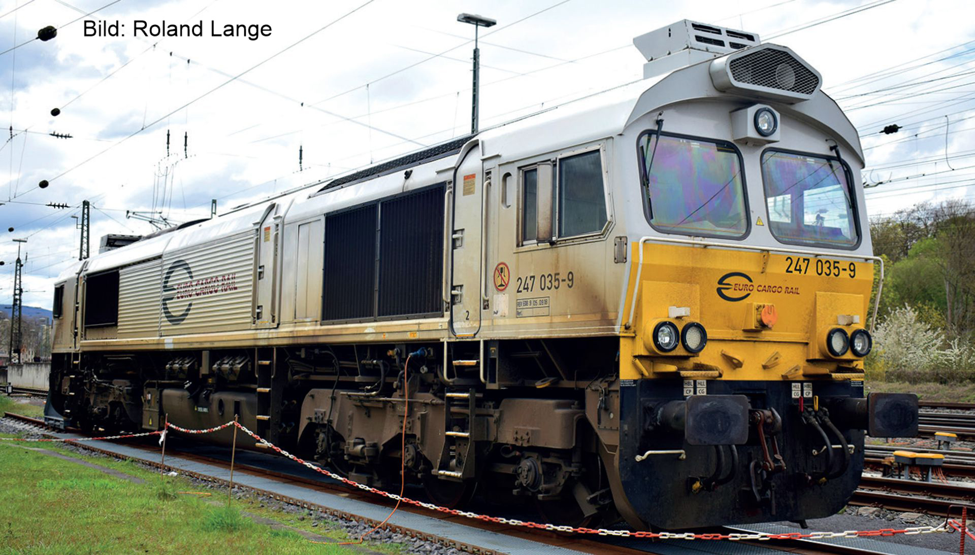 | dieselová lokomotiva šedá-oranžová-šedá, černý rám a pojezd „Euro Cargo Rail“ |