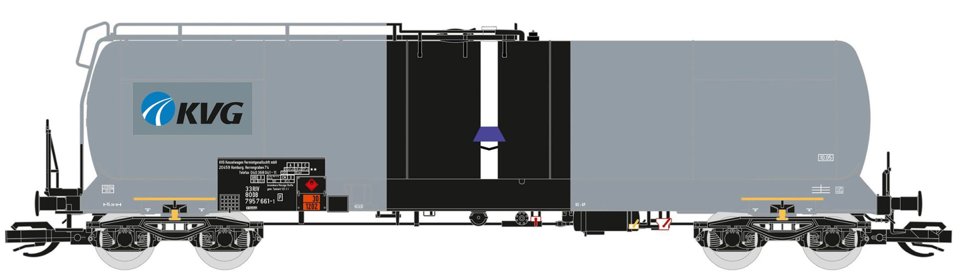 | kotlový vůz na lehké oleje šedý s podélnou lávkou a s brzdařskou plošinou „KVG“ |