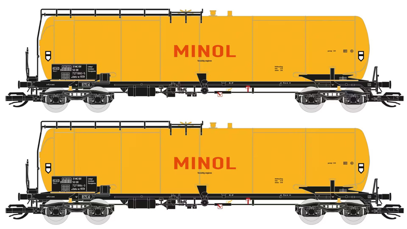 | set dvou žlutých kotlových vozů na lehké oleje „MINOL“ |
