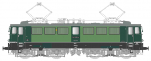 | elektrická lokomotiva zelená s korekcemi s šedou střechou, černý rám |