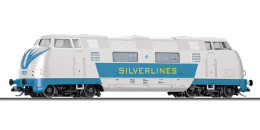 | dieselová lokomotiva v barevném schematu „SILVERLINES“ |