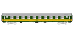 | rychlíkový vůz zelený se žlutým pruhem a šedou střechou 2. tř. |
