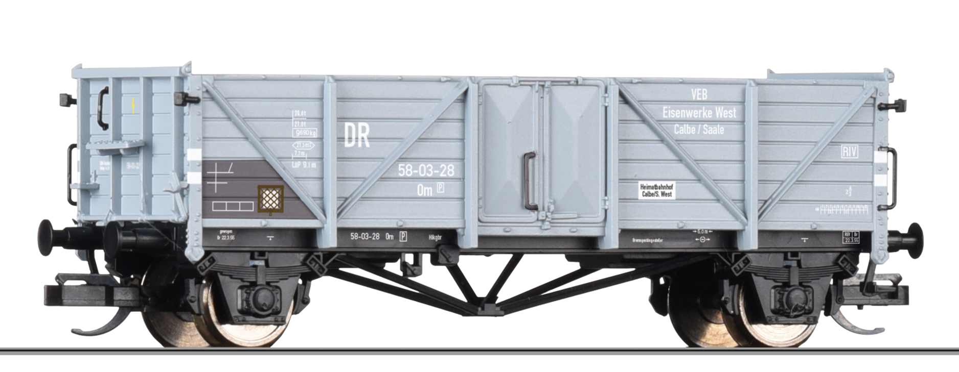 | otevřený nákladní vůz šedý „VEB Eisenwerke West“ |