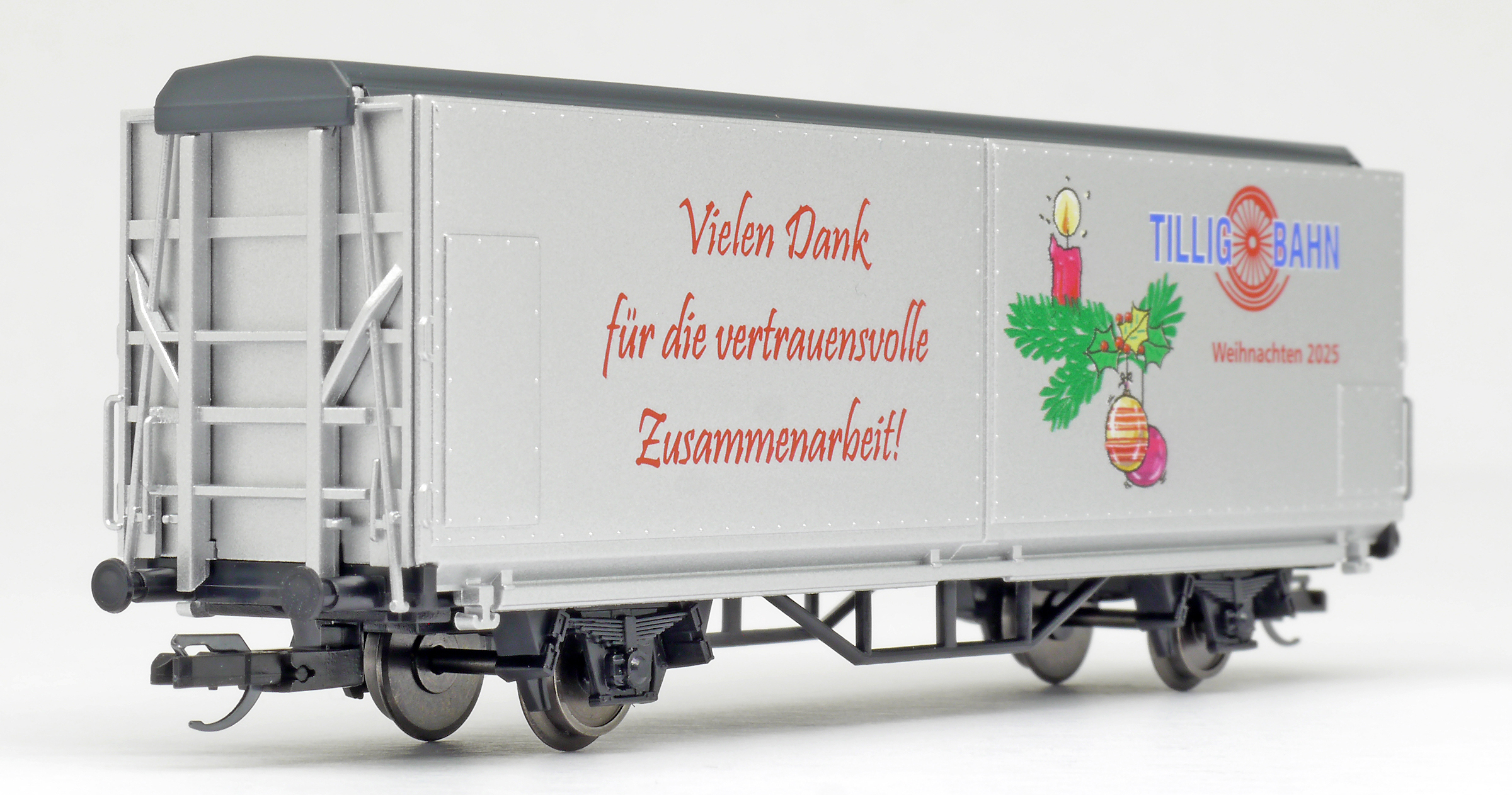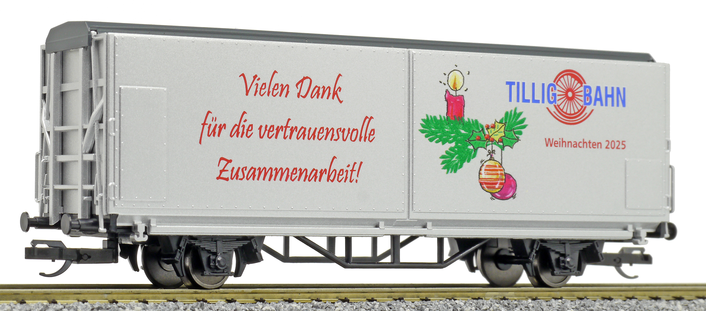 Popis   nákladní vůz s posuvnými bočnicemi světle stříbrný „Danke 2025“