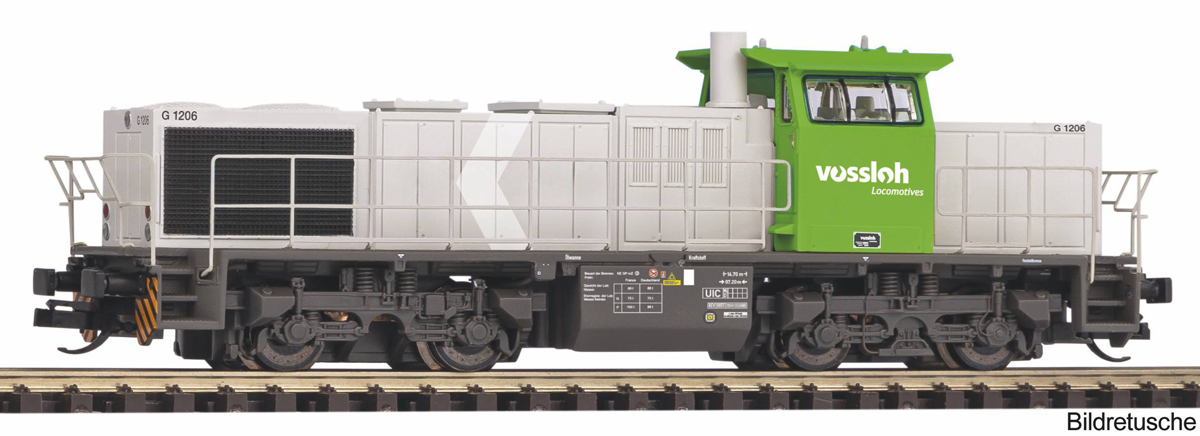 | dieselová lokomotiva šedá se zelenou kabinou „vossloh“ |