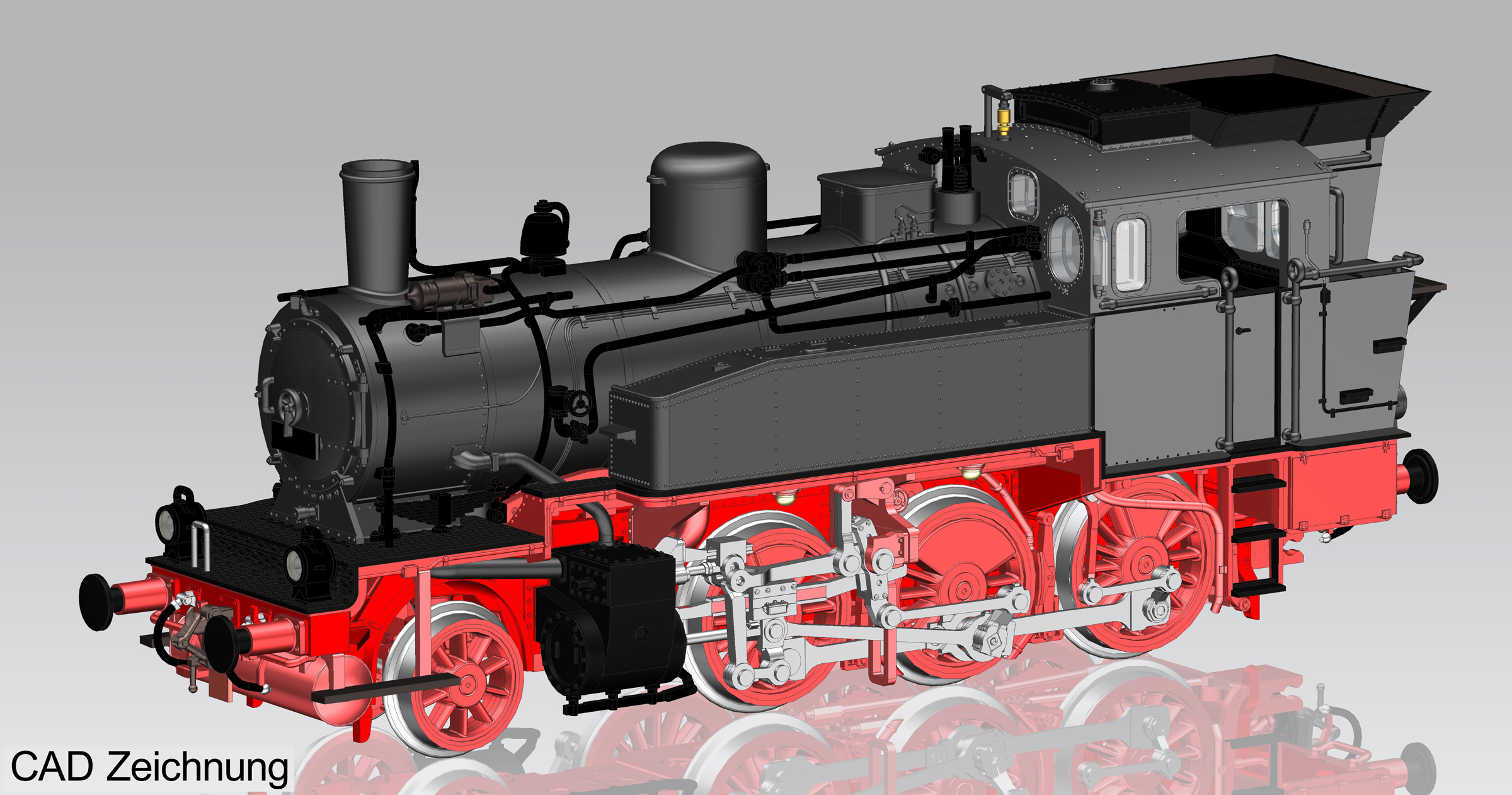 | parní lokomotiva černá s červeným pojezdem |