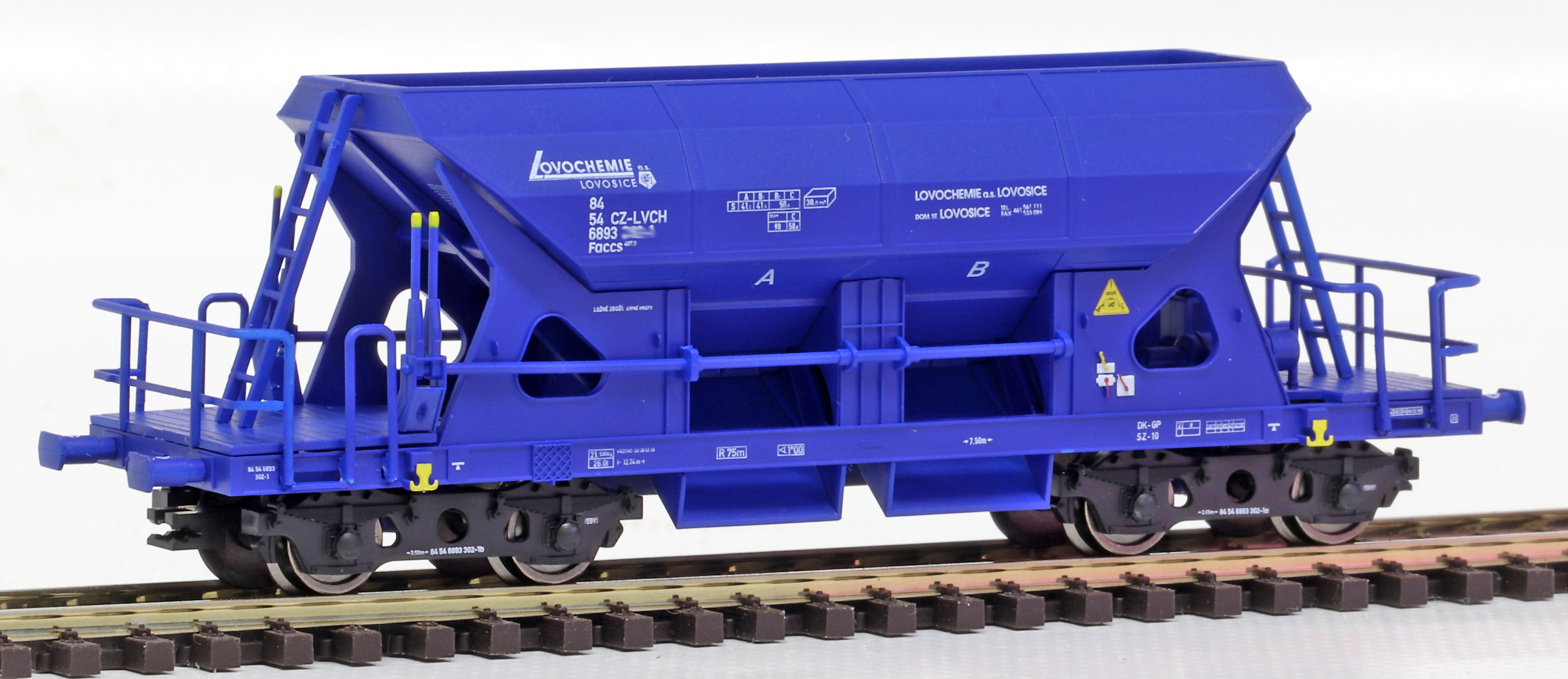 Popis   otevřený samovýsypný vůz modrý „Lovochemie“