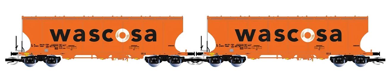 set dvou nákladních samovýsypných vozů na přepravu obilí s logem „WASCOSA”
