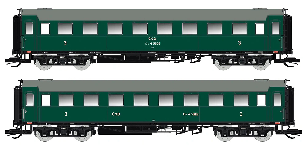 | oddílový osobní vůz zelený s šedou střechou 3. tř. |