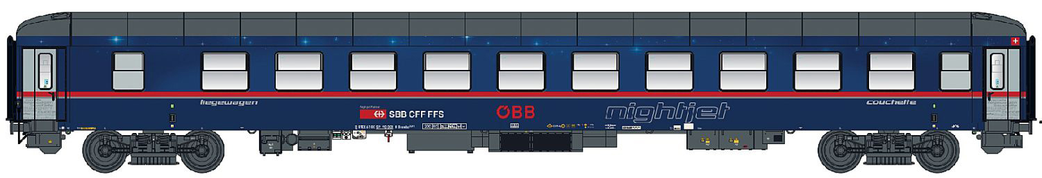 | lehátkový vůz modrý s šedou střechou „Nightjet“ |