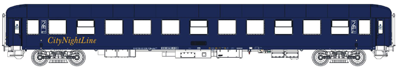 | lehátkový vůz modrý s modrou střechou „CityNightLine“ |