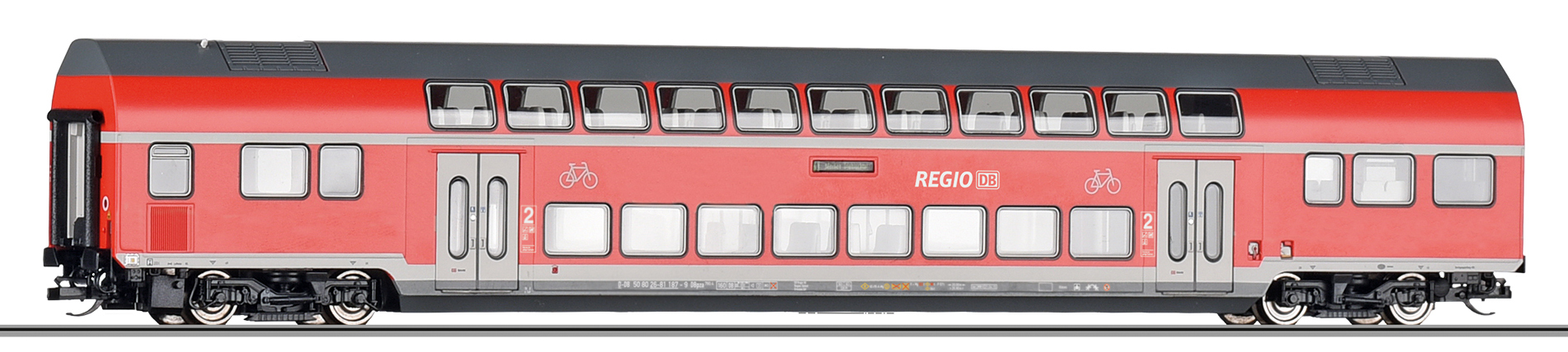 | řídící vůz v barevném schematu „DB Regio“ 2. tř. a s oddílem na kola |