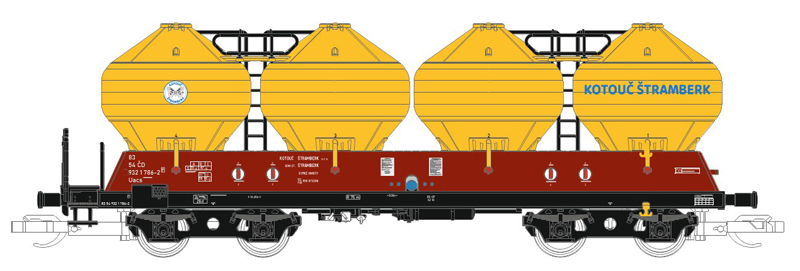 | nákladní samovýsypných nádobový vůz červenohnědý se žlutými nádobami „Kotouč Štramberk“ |