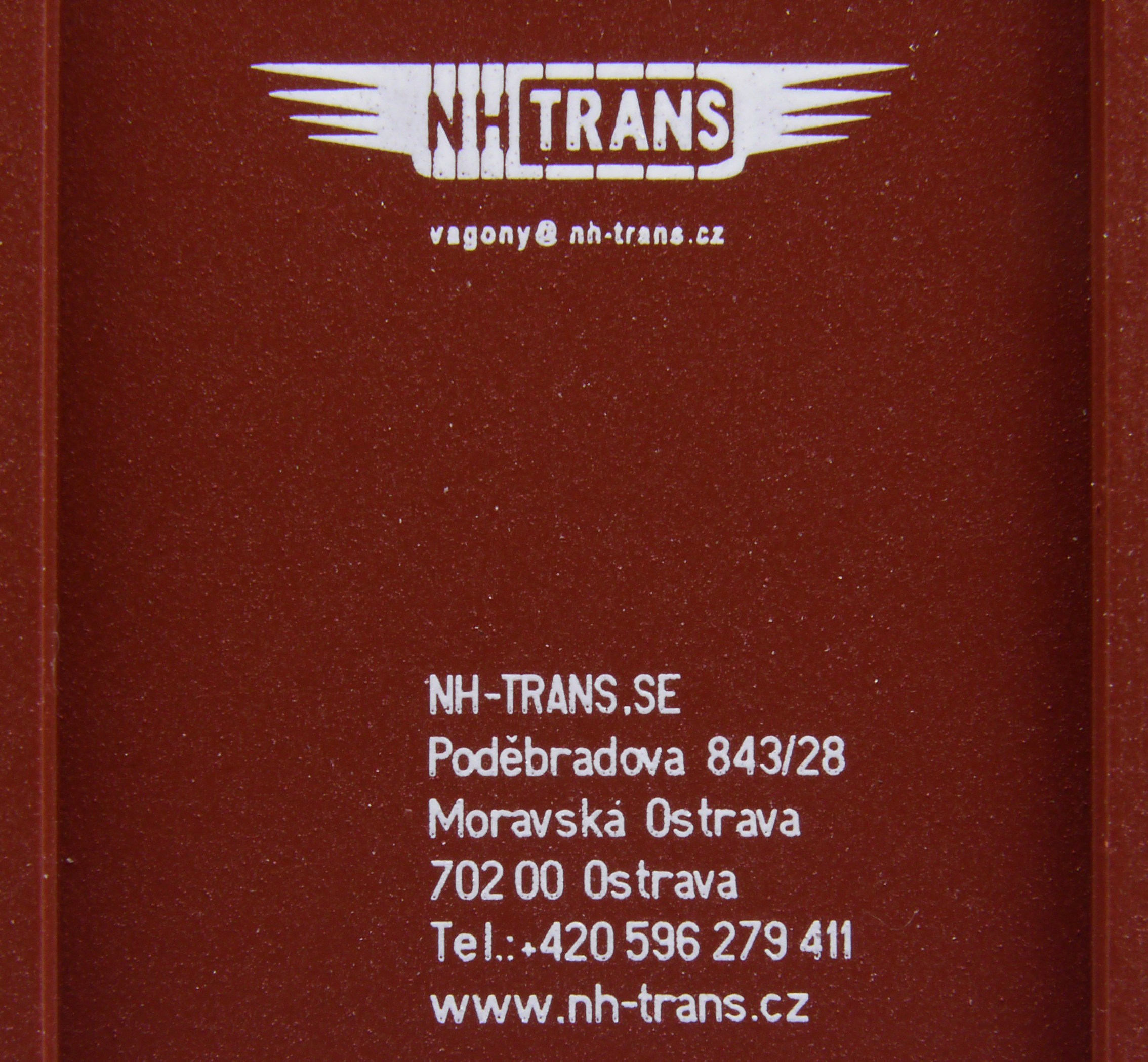 | vysokostěnný nákladní vůz červenohnědý s logem „NH Trans“ |