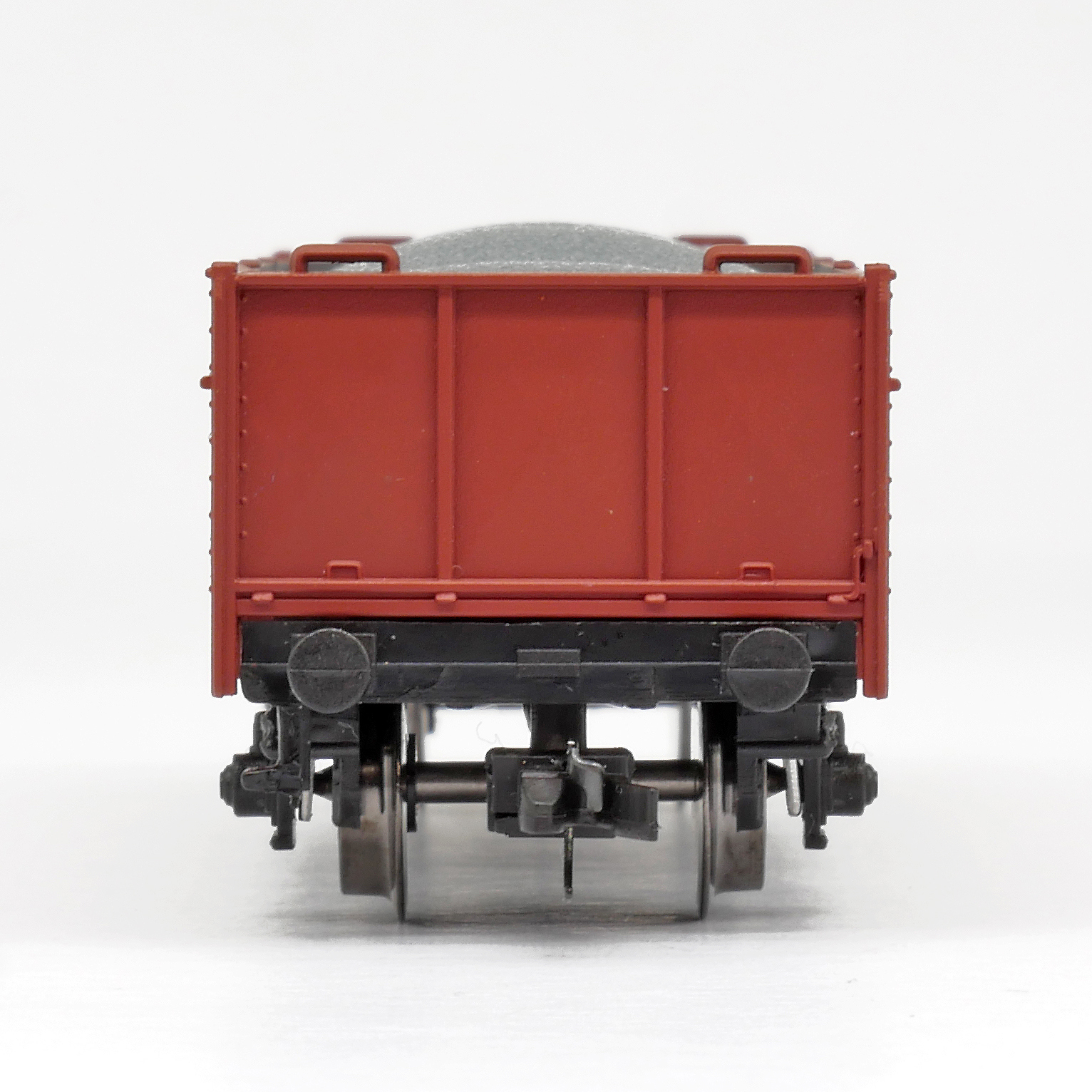 | otevřený nákladní vůz červenohnědý s nákladem šterku, bílé nápisy |