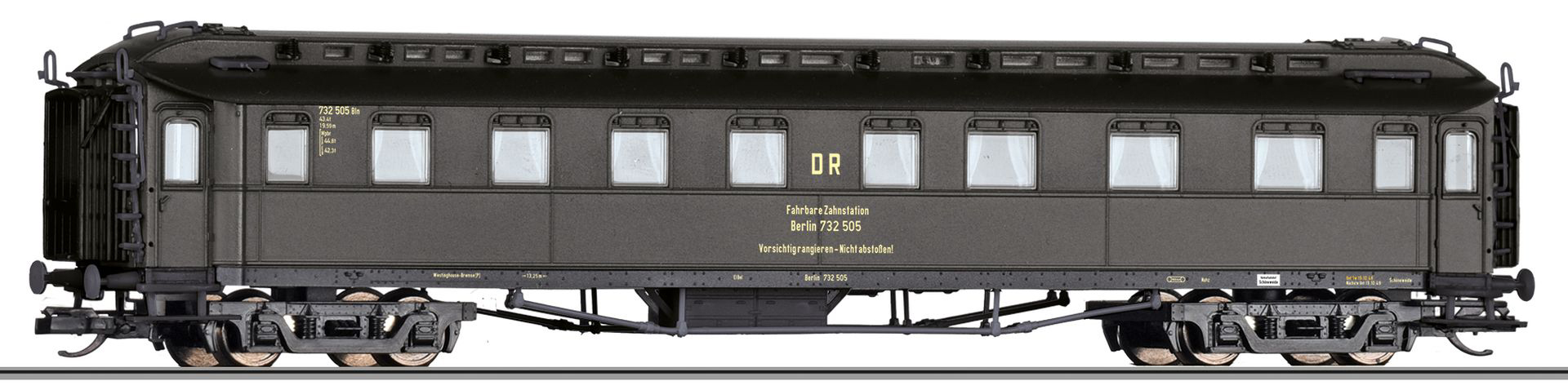 měřítko 1:120 - rozchod kolejí 12 mm vnitřní interiér vozu je možná instalace osvětlení interiéru kinematika krátkého spřáhla (KKK) podle normy NEM 358 165 mm - celková délka modelu přes nárazníky 4 - celkový počet náprav nebo rozložení náprav 105 g - hmotnost brutto - model včetně prodejního obalu