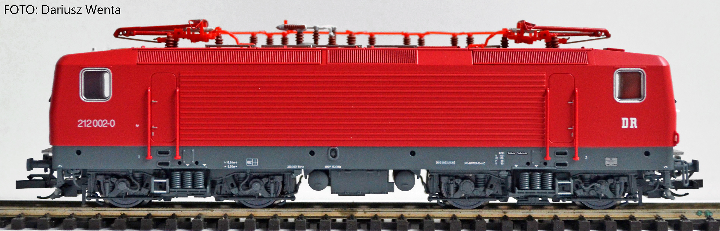 Kód   02360  [Lokomotivy] → [Elektrické] → [BR 143] → 02360: bílá s červenými pásy a černým pojezdem BR 212 ″Weisse Lady″