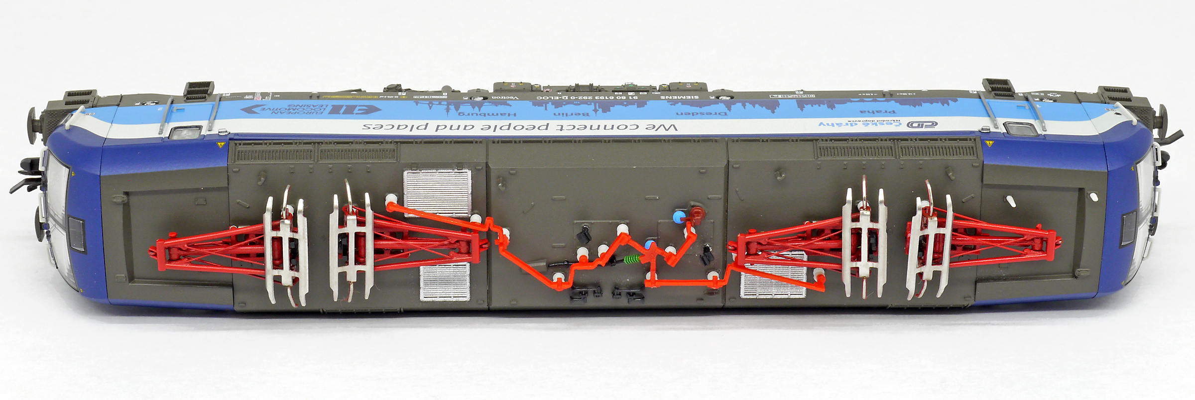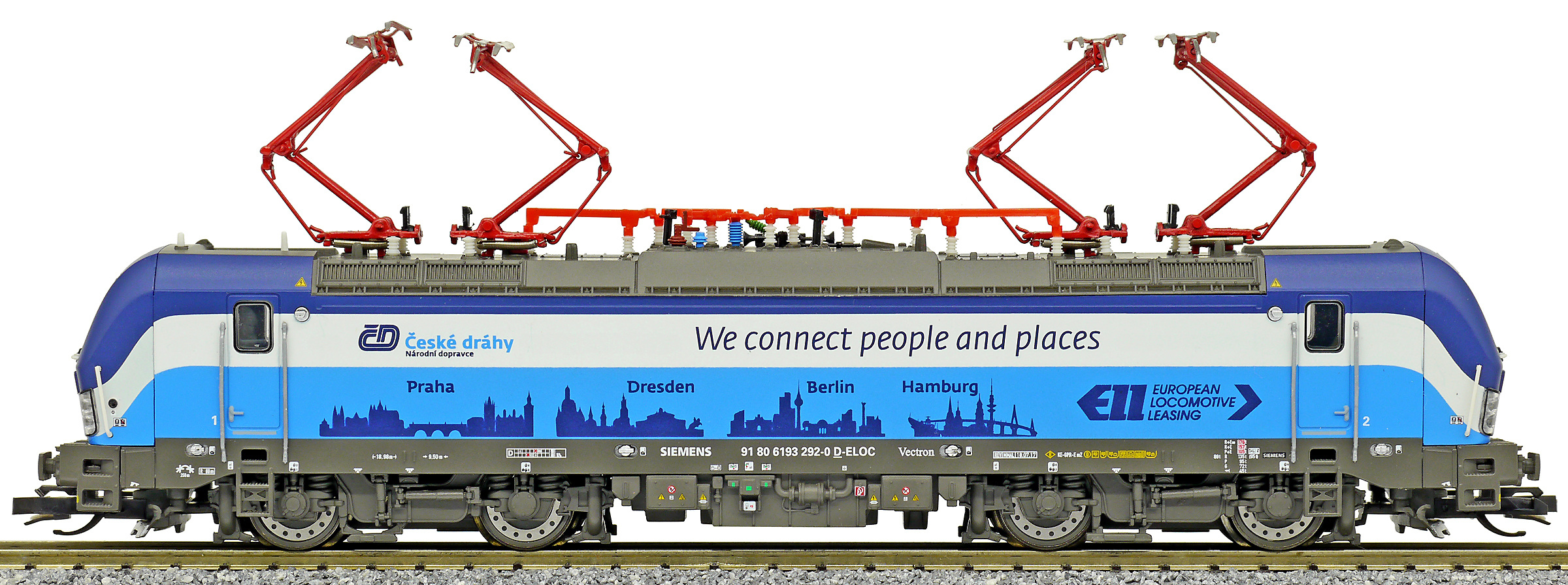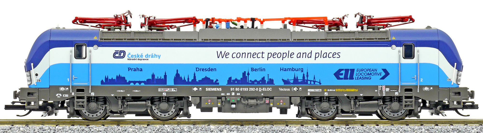 měřítko 1:120 - rozchod kolejí 12 mm osvětlení - 3 reflektory vpředu, 2 světla vzadu, přepínatelné podle směru jízdy 4 hnané nápravy 2 bandážované nápravy kinematika krátkého spřáhla (KKK) podle normy NEM 358 digitální rozhraní podle NEM 662 s konektorem Next18 možný provoz s pantografem 158 mm - celková délka modelu přes nárazníky 4 - celkový počet náprav nebo rozložení náprav 300 g - hmotnost brutto - model včetně prodejního obalu 155 g - hmotnost netto - pouze model