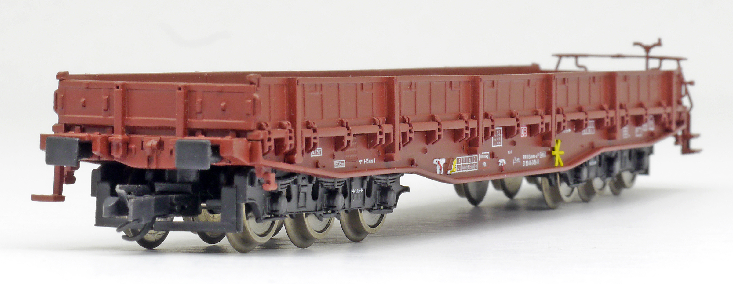 měřítko 1:120 - rozchod kolejí 12 mm kinematika krátkého spřáhla (KKK) podle normy NEM 358 minimálni projížděný poloměr 310 mm 132 mm - celková délka modelu přes nárazníky 6 - celkový počet náprav nebo rozložení náprav 68 g - hmotnost brutto - model včetně prodejního obalu 32 g - hmotnost netto - pouze model