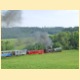 Den úzkorozchodné dráhy Třemešná - Osoblaha   Pozvánka na tuto akci slibovala zajímavý celodenní program v tomto zapadlém cípu pohraničního kraje. Jízdní řád parního vlaku předpokládal zdolání trati s délkou 20km za zhruba 2 hodiny. Trať jsem měl trochu zmapovanou z minulé akce. Zvlněnou krajinu trať zdolává mnoha oblouky střídavě lesem a napříč mnoha poli. Pěknými místy pro fotozastávky jsou např. přejezd za Třemešnou, kde trať dále vede podél silnice poté dvěma protisměrnými oblouky mizí v lese, za Dívčím Hradem kopíruje trať zvlněné krajinné hřbety a ve Slezských Rudolticích je pěkná viditelnost na širou trať v obou směrech. Navíc ve Slezských Rudolticích dobírala parní lokomotiva vodu a vlak se křižoval v 11.07 s pravidelným spojem z Osoblahy. Přímo v Osoblaze probíhal rušný provoz, na 3 kolejích bylo nutné vykřižovat všechny soupravy. Z Osoblahy do Bohušova jel na otočku osobní vlak s dieslovou lokomotivou FAUR.