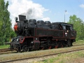 První ranní odjezd do Zborovic byl plánován na 8:00. Čas do odjezdu byl využit nejdříve na otočení parní lokomotivy na ruční točně, aby jela do Zborovic "komínem napřed". Dále probíhalo dozbrojení vody z hydrantu u skladiště. Jak jsem si všiml později, uhlí stačilo na celou cestu, ale v průběhu celého dne se dobírala voda při každé možné příležitosti. Na první cestu do Zborovic vyjel parní vlak s postrkem v 8:00 plně obsazen. Většina rodičů s dětmi vystoupila ve Zdounkách, kde se konala akce Pohádkový les. My ostatní jsme pokračovali až do Zborovic. Tam na konečné došlo k posunu parní lokomotivy do čela vlaku "uhlím napřed" a po krátké pauze jsme se vydali v 8:50 na zpáteční cestu. Ve Zdounkách jsem počkali na křižování s pravidelným osobním vlakem Os 13908/9 na trase Kroměříž - Zborovice přibližně v 9:16. Do Kroměříže jsme se vrátili v 9:37 a rozpálen byl nejen kotel parní lokomotivy, ale i my, neboť dopolední slunce již pořádně rozehřálo vzduch. Parní lokomotiva opět využila čas před druhou jízdou k doplnění vody, aby v 11:00 opět stanula v čele vlaku. Při této jízdě nebyl ve Zborovicích prováděn posun s lokomotivou. Celý vlak dojel do stanice Zdounky jak byl. Tam byla plánována přibližně dvouhodinová pauza v časovém rozmězí 12:20 až 14:15. V 13:20 se uskutečnilo závodění malých cyklistů s parní lokomotivou. Ti závodili po souběžné silnici a bylo poznat, že na závod měli připravena kola a fyzičku. Parní lokomotiva se snažila jak mohla, zkoušela se rozjíždět až ze zhlaví, aby nabrala rychlost, ale na malé závodníky nestačila. Pobyt ve stanici zpříjemnilo křižování s pravidelnými osobními vlaky Os 13913, který jel v 12:48 do Zborovic, a Os 13914, který se vracel zpět a ve Zdounkách se křižoval v 13:18. Veškerý zbylý čas doplňovala parní lokomotiva vody z místního napáječe nebo z hasičské cisterny. Vzhledem k parnému odpoledni jsem se radeji zdržoval ve stínu skladiště a také jsem doplňoval energii a tekutiny. V odpoledním čase po návratu do Kroměříže v 14:37 bylo u parní lokomotivy provedeno odpopelení nad jámou u točny a opět dobírání vody. Čekala ji s celým vlakem ještě zpáteční cesta do Valašského Meziříčí, tentokrát v čele vlaku a s postrkem na konci. Tuto trasu jsem jel pouze do Hulína k nejbližšímu zpátečnímu rychlíkovému přípoji. Oceňuji při této akci možnost opřít se o spolupráci kolegů. Mohl jsem se tak dostat do Valašského Meziříčí před pátou hodinou, kdy už souprava vlaku byla nachystána u 2. nástupiště, ale obě lokomotivy ještě posunovaly a s parvnmi ranními slunečními paprsky se už nějaký ten záběr dal pořídit. Další informační zdroje: