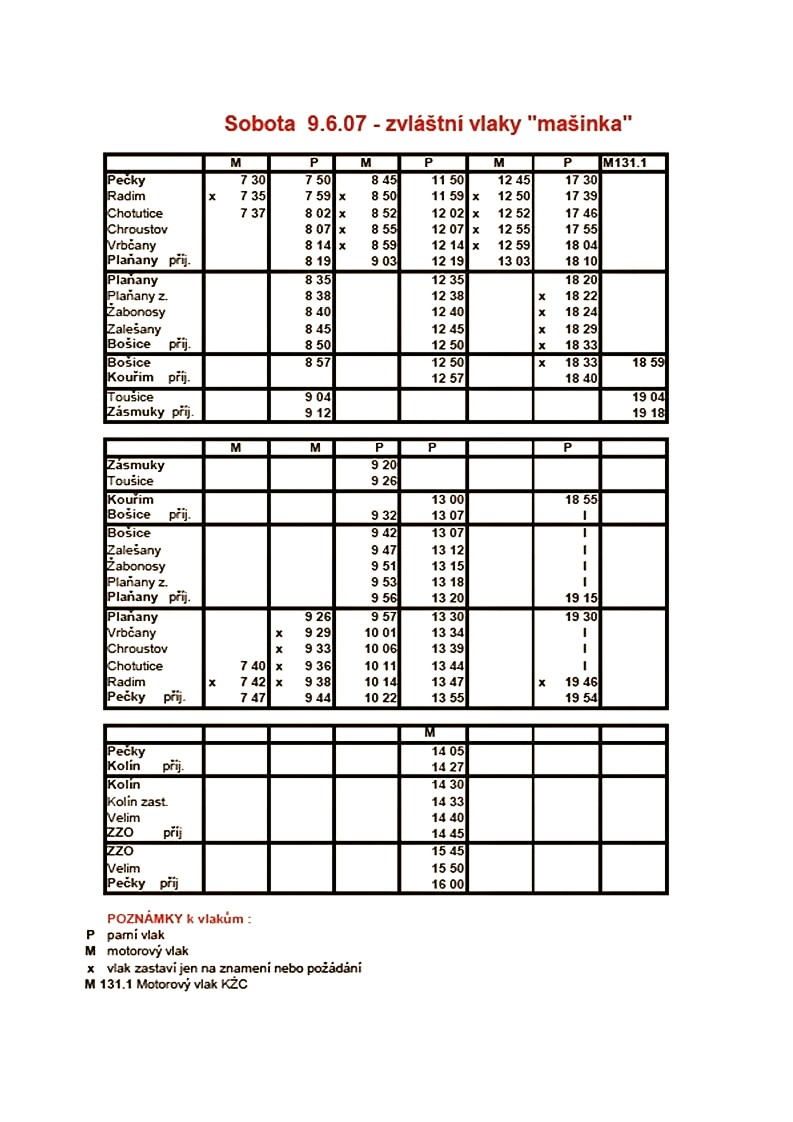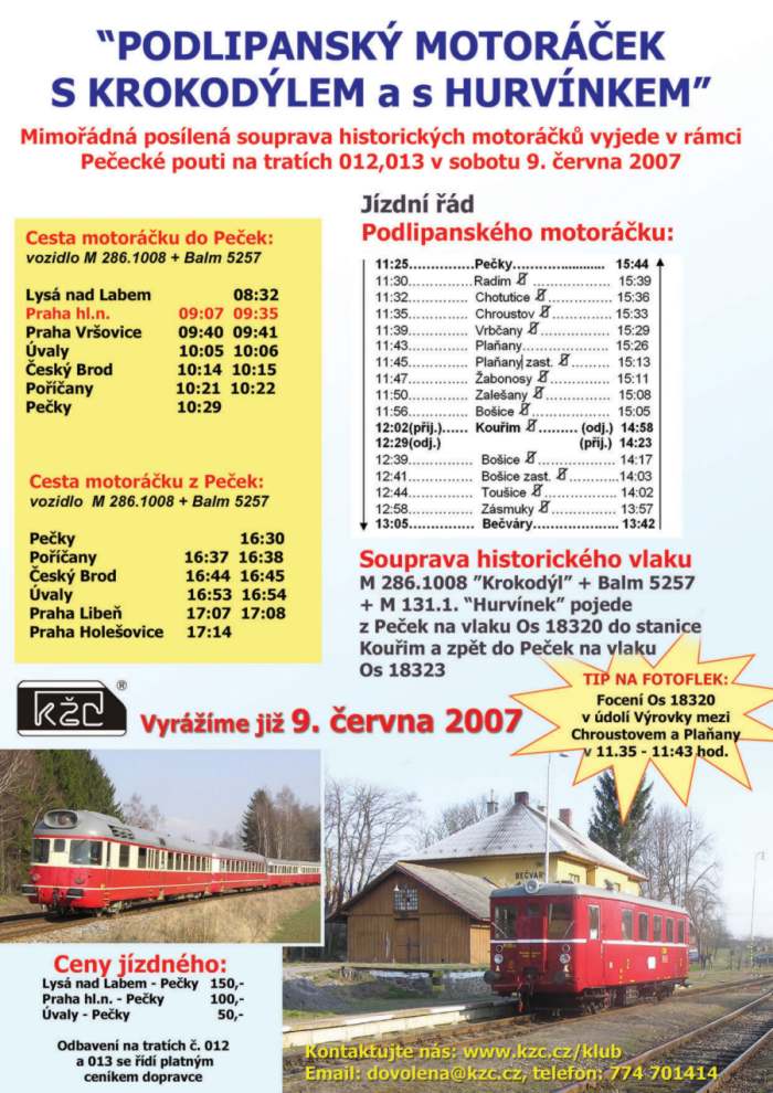 Po příjezdu do Peček jsem se snažil rychle odfotit vystavená kolejová vozidla. Jednak ostré dopolední slunce se rychle stáčelo a lokomotivy měly nasvícené jen čelo a dále každý osobní vlak přivážel do Peček další návštěvníky a stanice byla chvílemi zaplněna jako náměstí. Vůbec jsem nezáviděl strojvedoucím projíždějících rychlíků, kteří se snažili alespoň houkáním na sebe upozornit. V 10:22 jsem si počkal na příjezd zvláštního vlaku ze Zásmuk. Parní lokomotiva 213.902 poté posunovala až na vlečkovou kolej ZPA, kde zůstala stát co nejblíže přejezdu, protože přímo uprostřed silnice byl hydrant, ze kterého probíhalo doplňování vody. Časově náročnější bylo manuální doplňování zásob uhlí. S minimem technických prostředků pánové nejdříve nahazovali uhlí lopatou, potom přešli na metodu kyblíků. V dopoledním parnu to nebyla žádná slast. Naštěstí další jízda zvláštního vlaku v čele s parní lokomotivou byla plánována na 11:50 na trase Pečky - Plaňany - Bošice - Kouřim a zpět. V polední pauze jsem se vydal obejít modelářské výstavy tak, abych byl zpět na návrat zvláštního vlaku v 13:55. Parní lokomotiva opět posunovala na vlečku ZPA a motorový zvláštní vlak pokračoval v 14:05 nejdříve do Kolína a potom na ŽZO. Odpolední čas jsem využil na návštěvu ostatních výstav modelových kolejišť. Kolem 17. hodiny se začala stanice vylidňovat a mohl jsem v klidu zachytit idylickou scenérii odpočívající parní lokomotivy v sousedství parního válce, který tento den už svoje taktéž odjezdil, a malé motorové drezíny, která stojíc na stejné koleji snad chtěla vzdorovat síle parního stroje. Počkal jsem ještě na odjezd posledního zvláštního parního vlaku na stejné trase směr Kouřim v 17:30 a svoji účast na letošní akci Jede, jede mašinka jsem ukončil. Další informační zdroje: